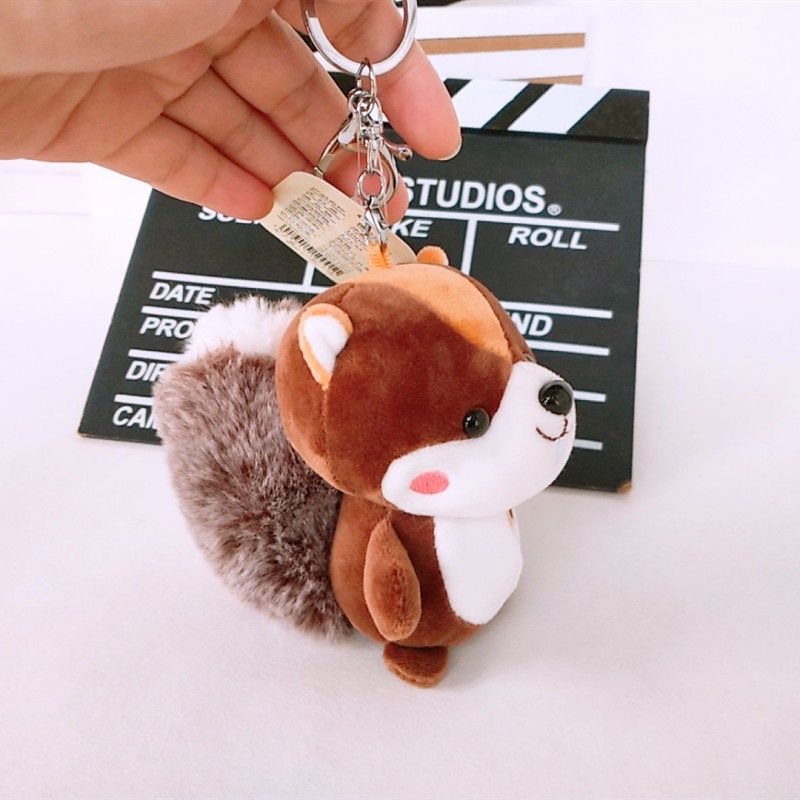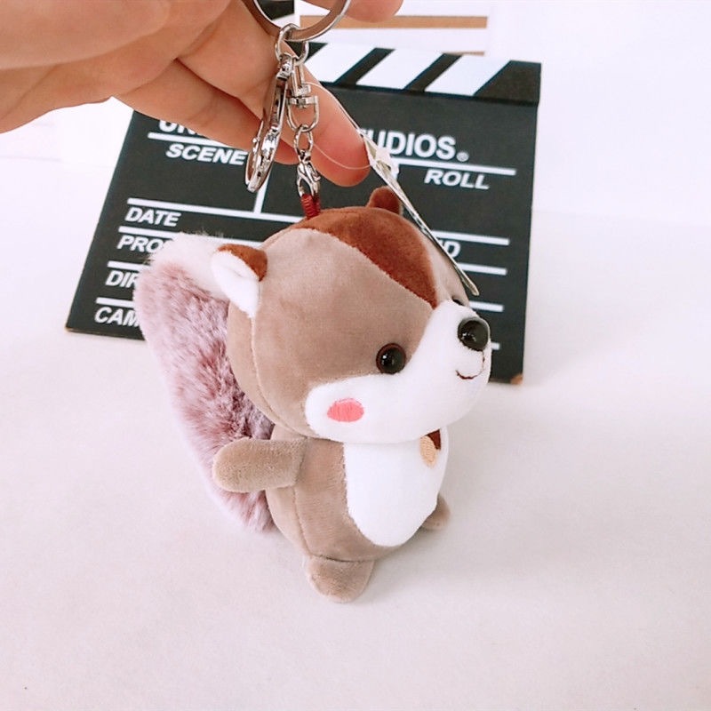 批发 创意坚果松鼠毛绒玩具 大尾巴松鼠挂件 书包挂饰汽车钥匙扣