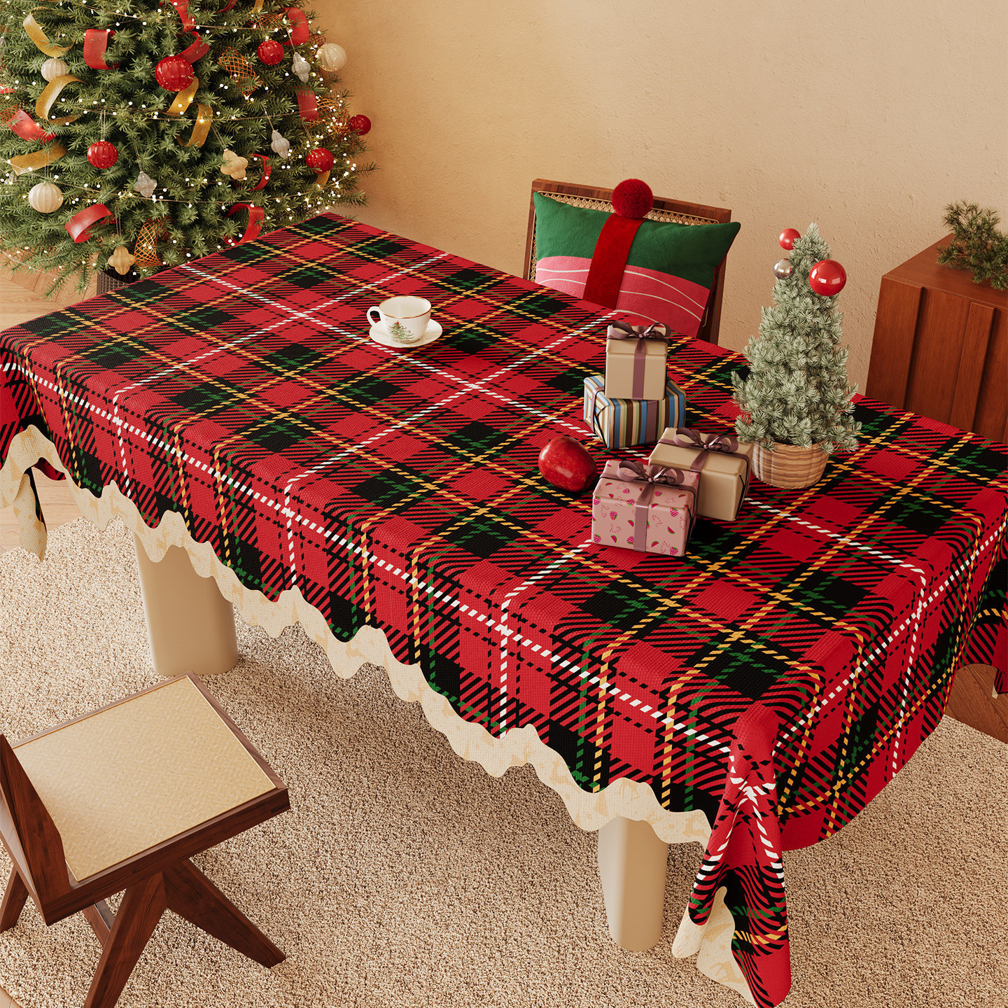 圣诞桌布防水防油免洗红色氛围感新年装饰布置2025茶几布餐桌布