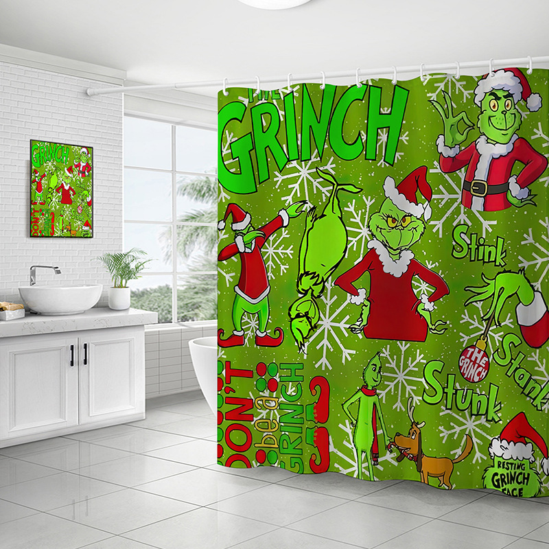 圣诞1系印花浴帘现货防水防霉布免打孔浴室淋浴卫生间洗澡隔断帘