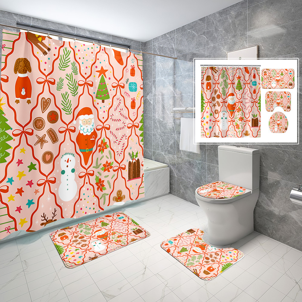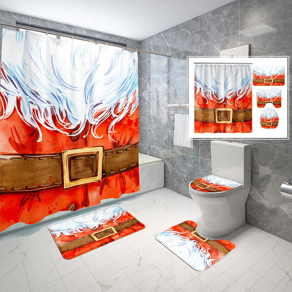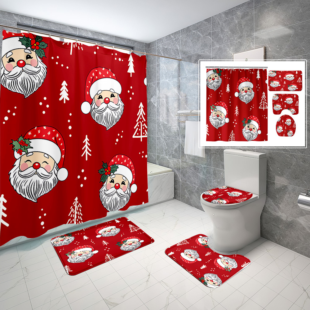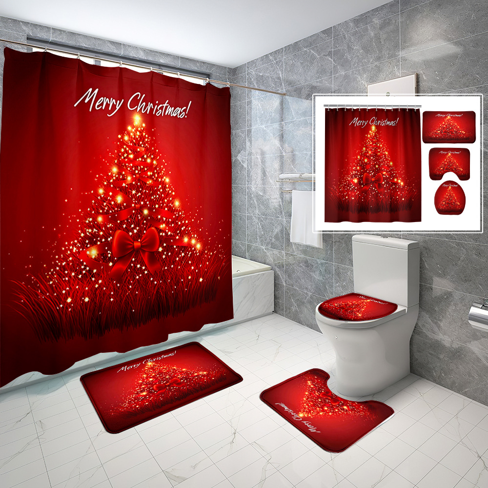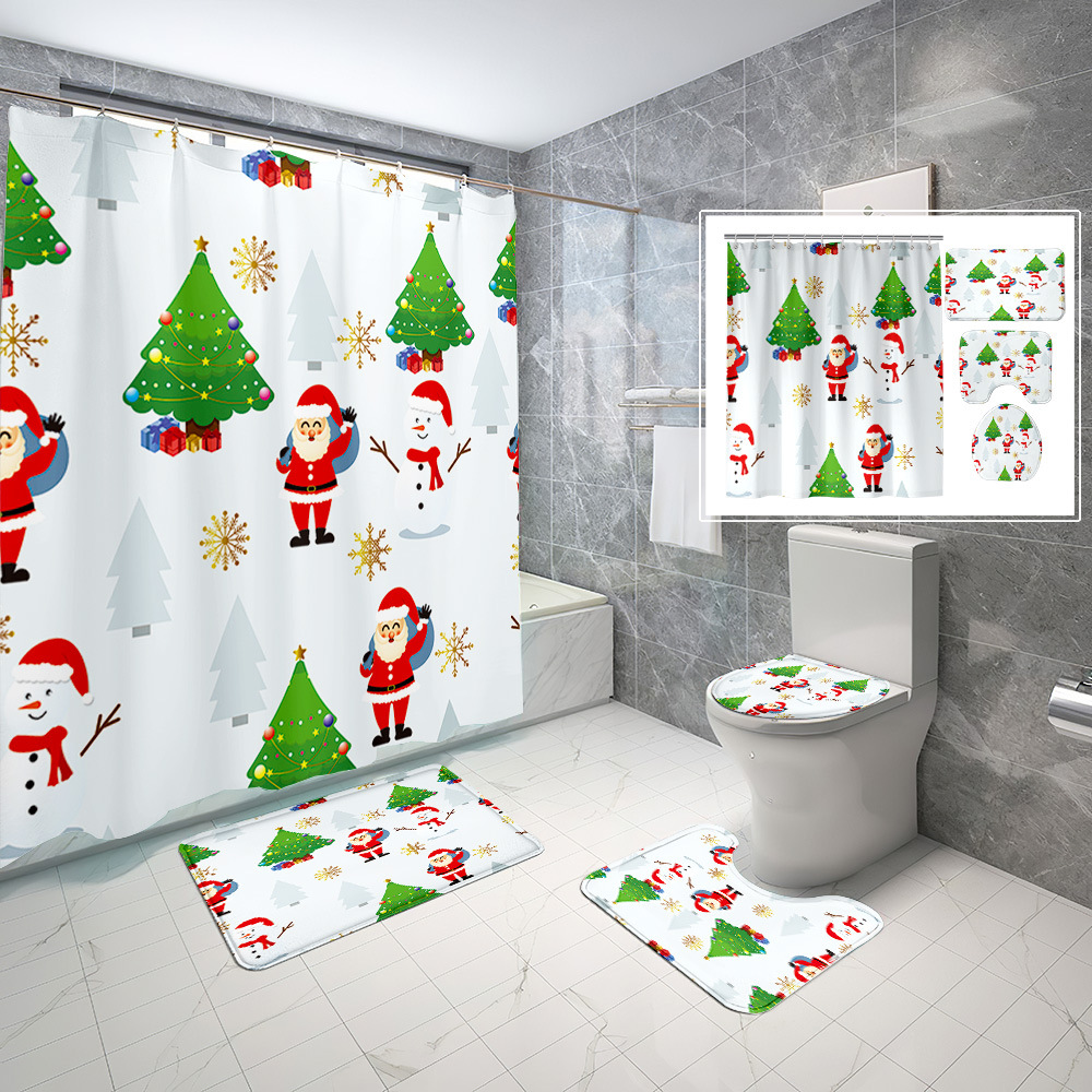 厂家直供跨境电商圣诞节数码印花防水浴帘四件套批发
