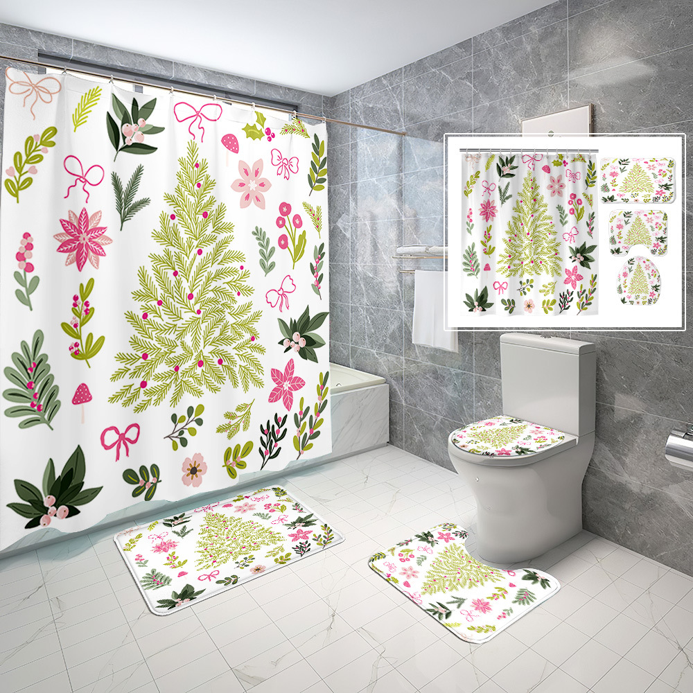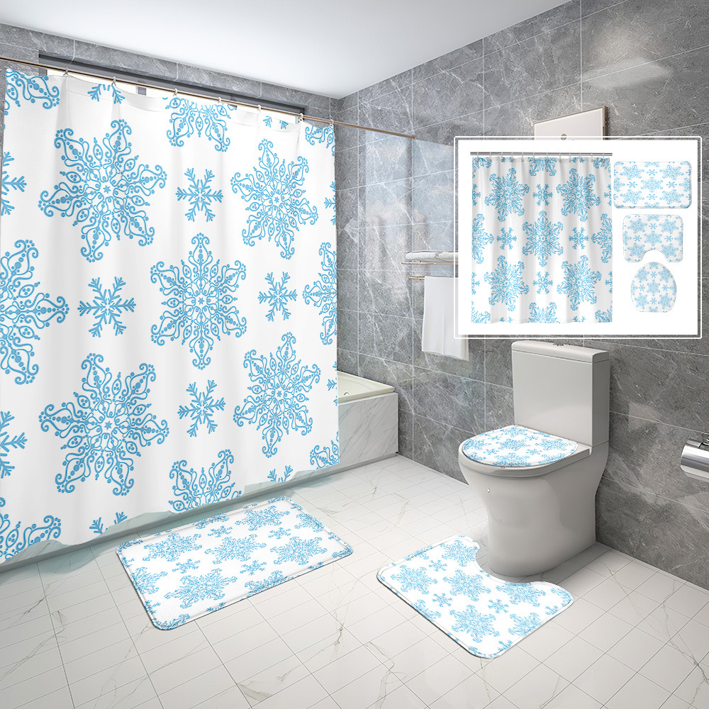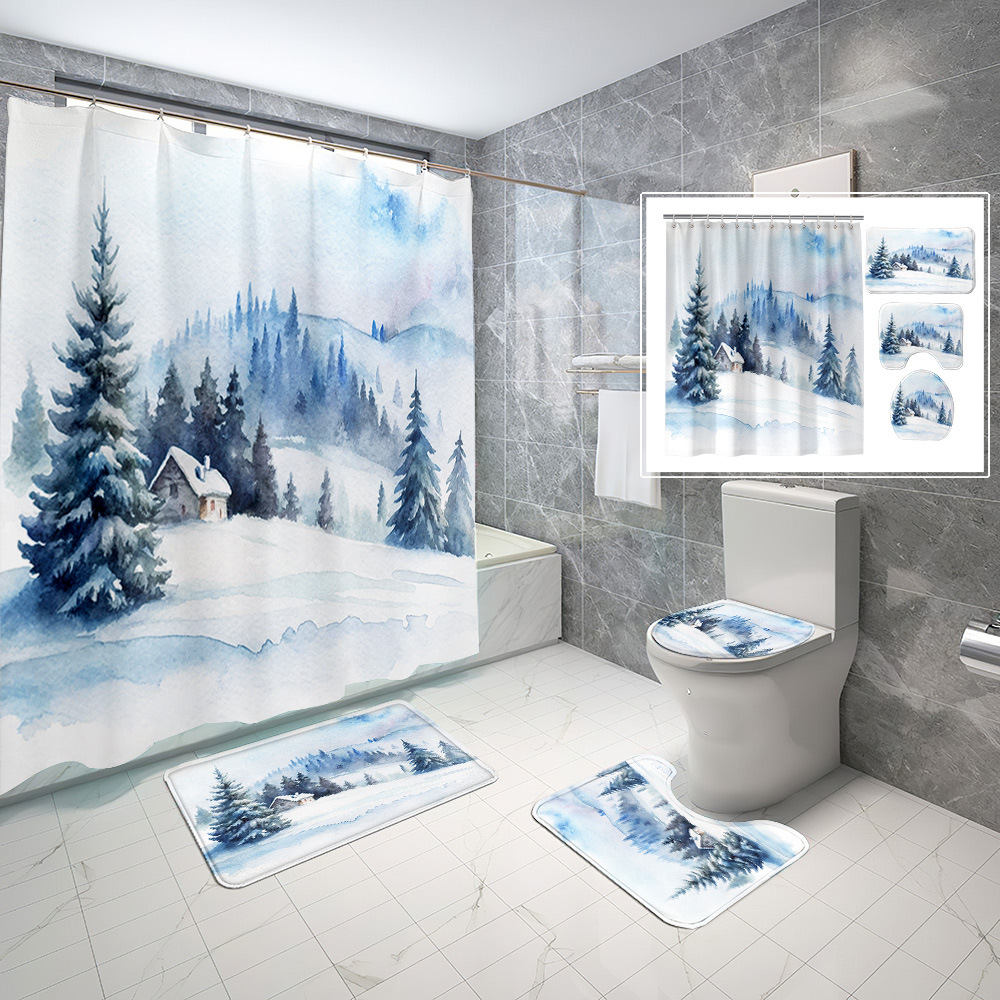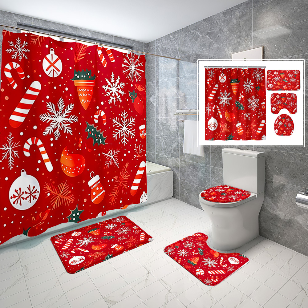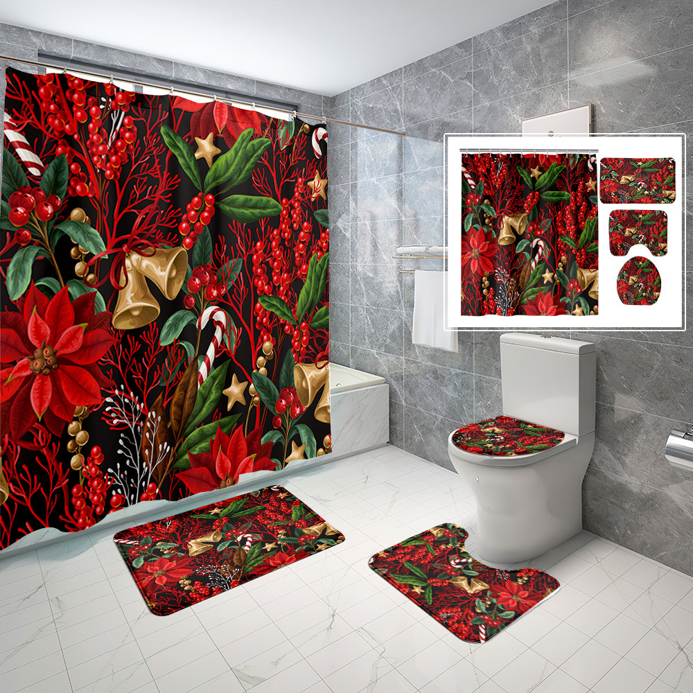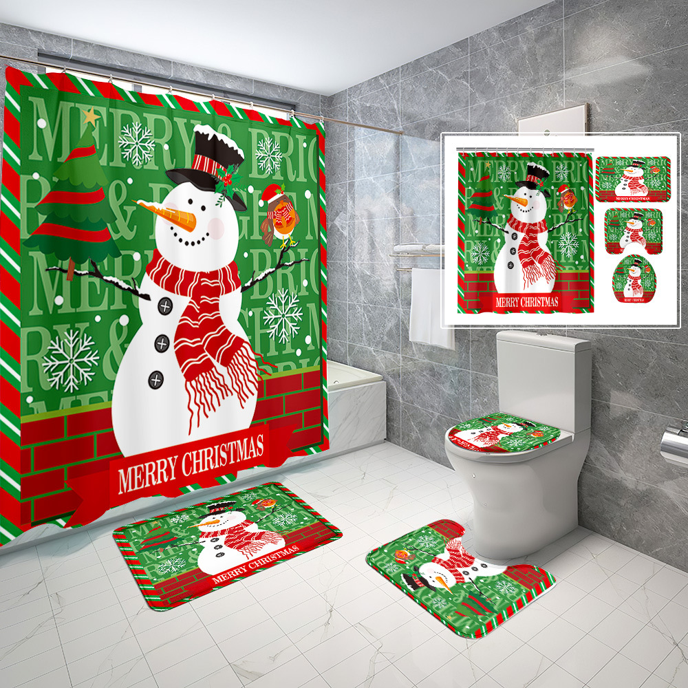 厂家直供跨境电商圣诞节数码印花防水浴帘四件套批发