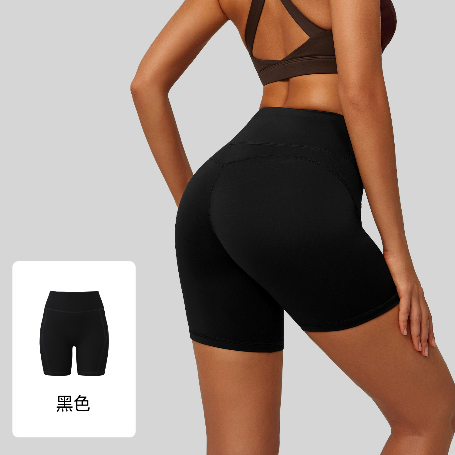 2026新夏无T高腰提臀紧身裸感五分瑜伽裤女跑步运动健身瑜伽短裤