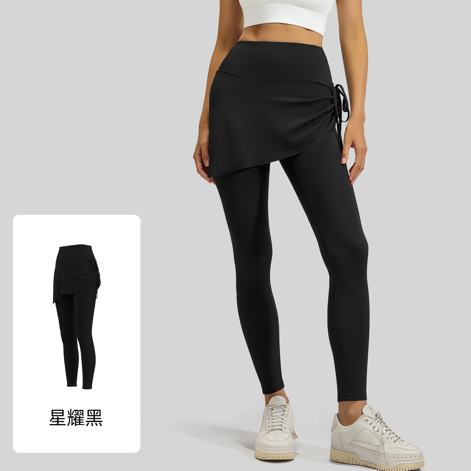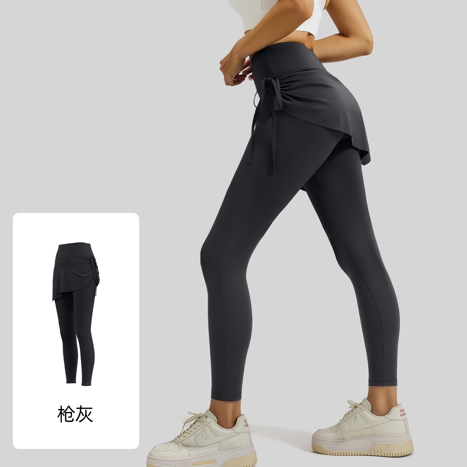 2026新款运动裤抽绳褶皱瑜伽裙裤女假两件显瘦防尴尬运动健身长裤