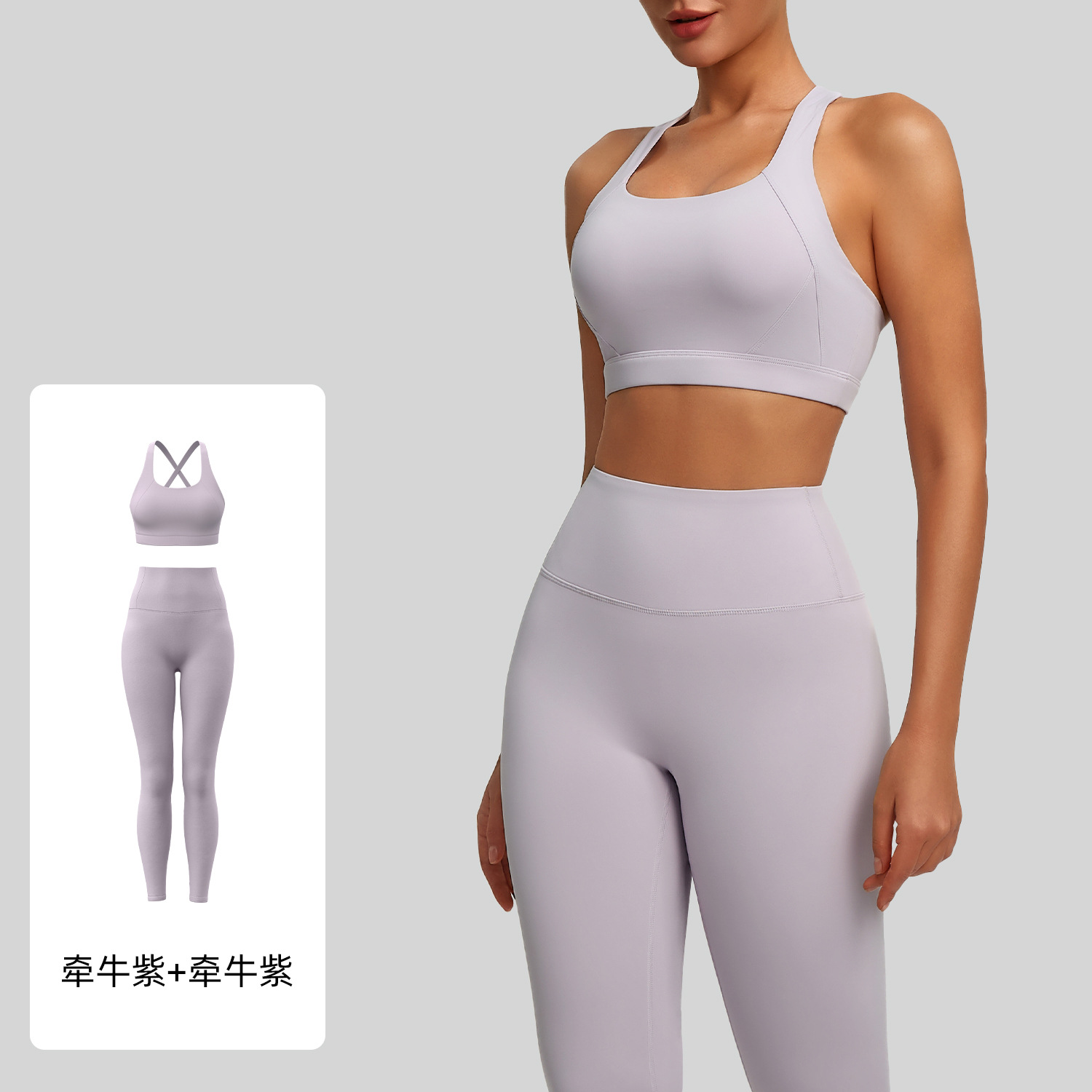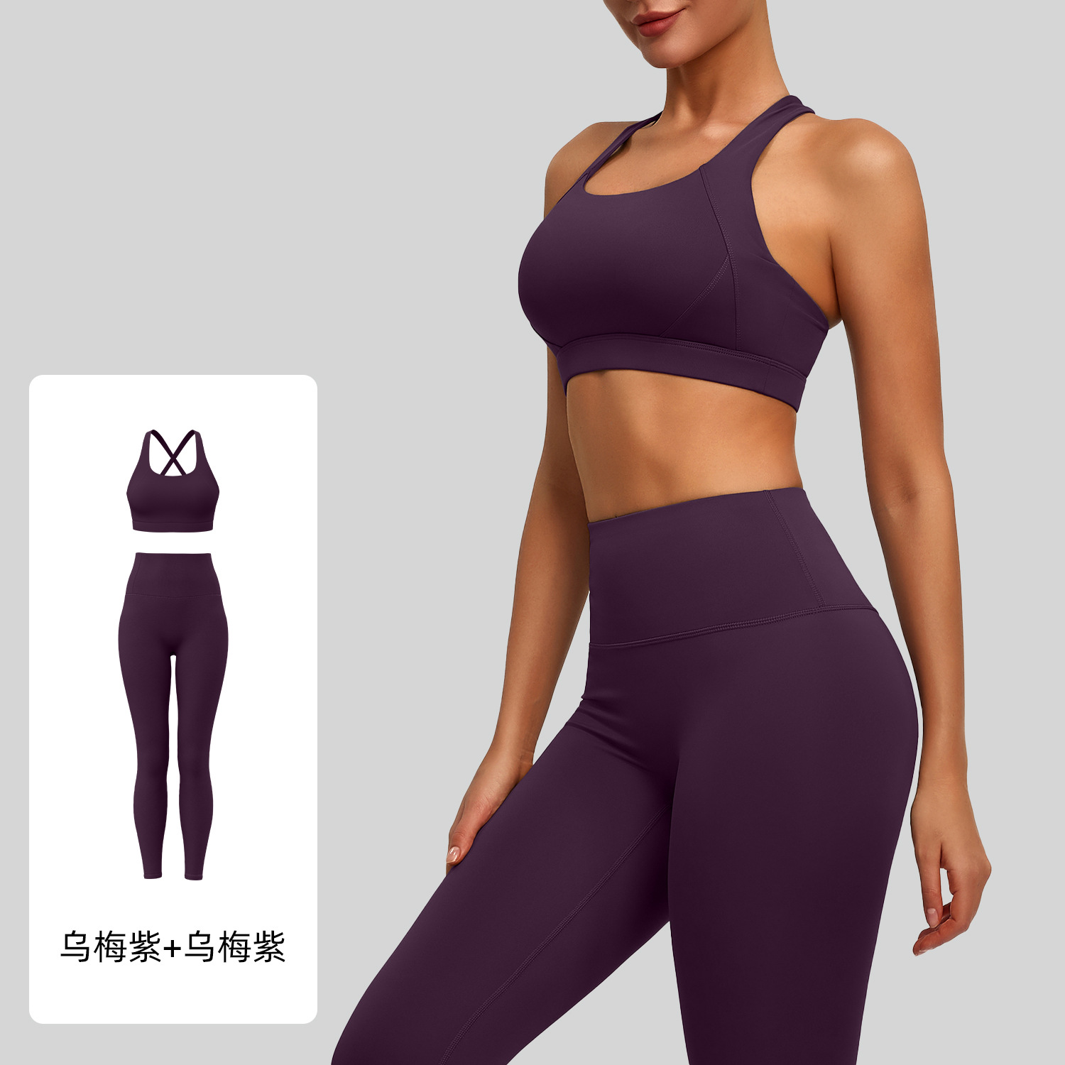 2026新款纯色裸感紧身瑜伽服防震提臀普拉提跑步健身运动套装女