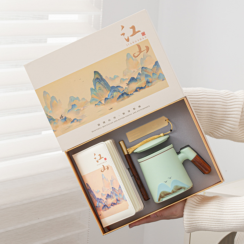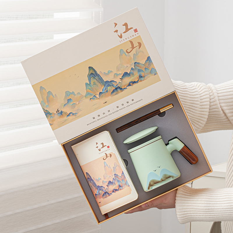 过滤办公杯+签字笔+笔记本+书签/浅绿/C款礼盒