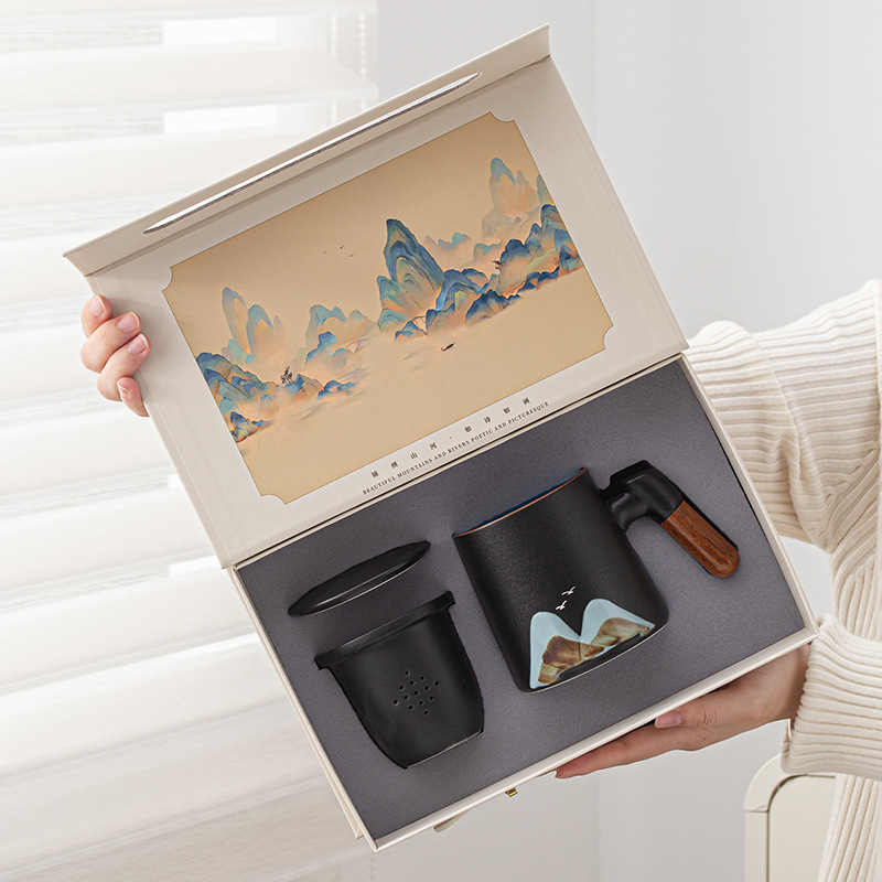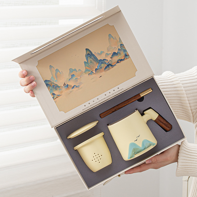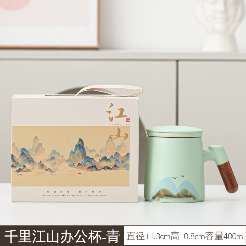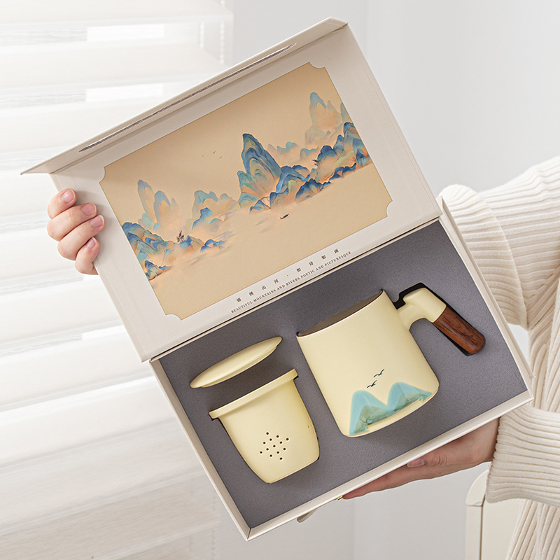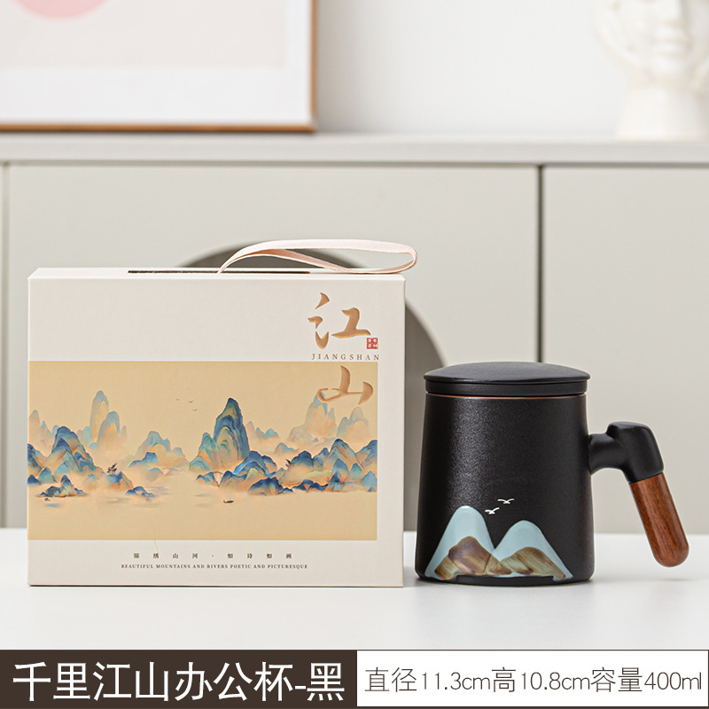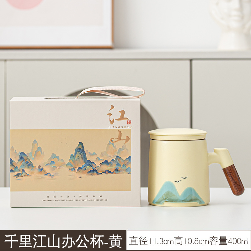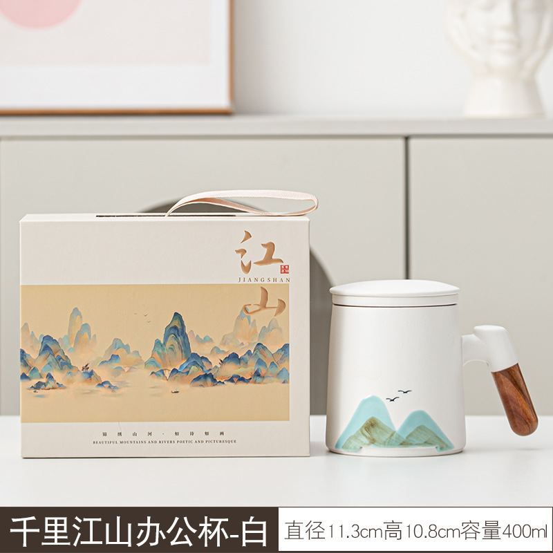 远山陶瓷马克杯带盖过滤茶水分离茶杯高颜值杯子水杯文创商务礼品