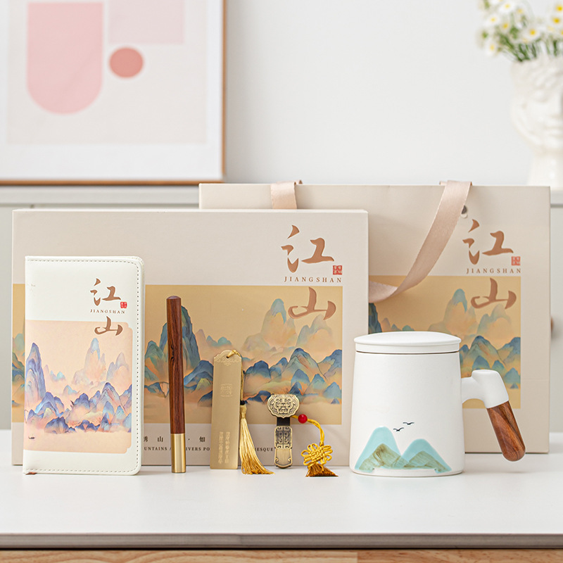 过滤办公杯+签字笔+笔记本+书签/白色/C款礼盒