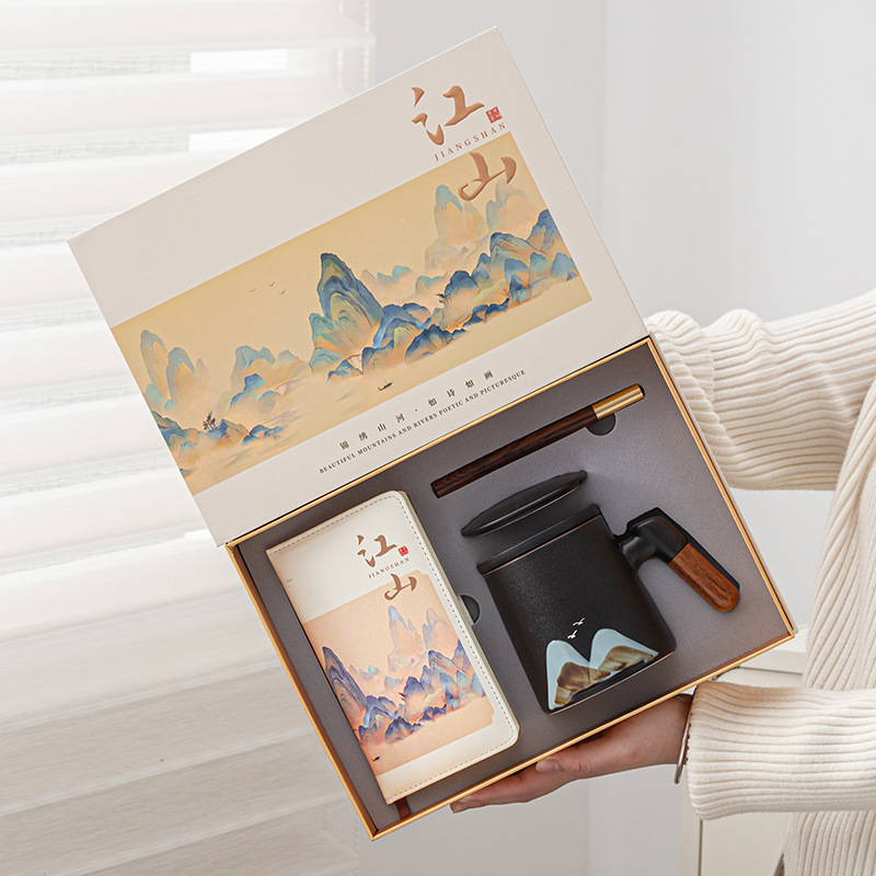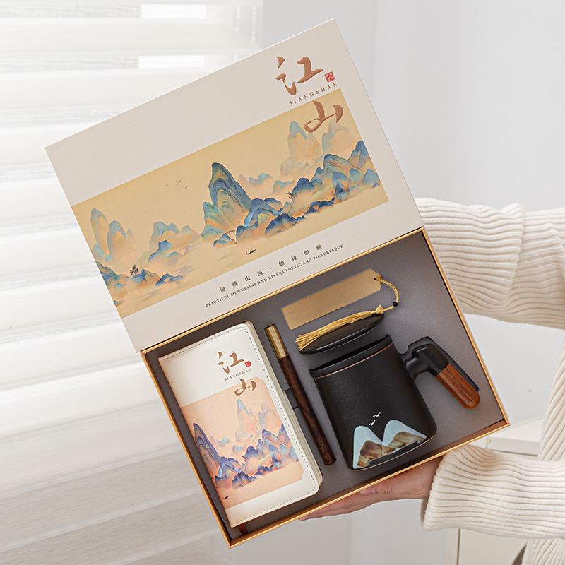 过滤办公杯+签字笔+笔记本+书签/米黄/C款礼盒