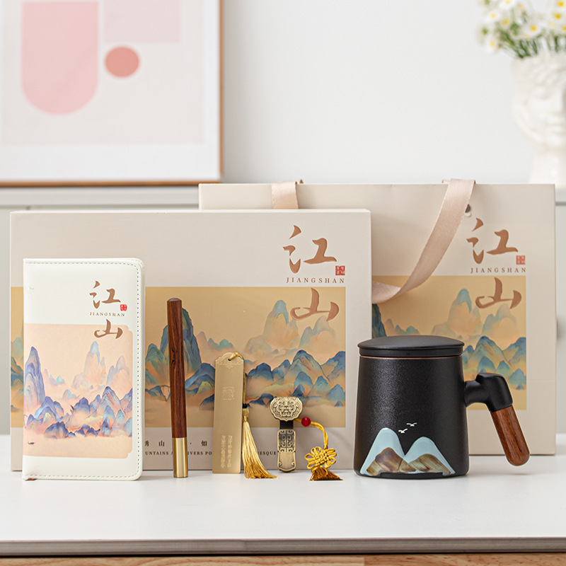 过滤办公杯+签字笔+笔记本+书签+U盘/黑色/C款礼盒