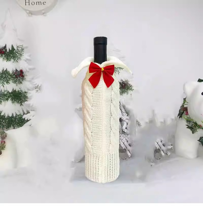 圣诞节装饰用品针织酒瓶套红酒套餐厅布置圣诞树衣服家居铃铛