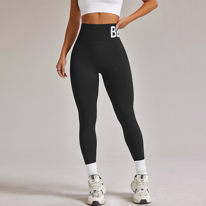 无缝针织高腰收腹字母瑜伽服长裤跨境欧美弹力跑步健身运动紧身裤