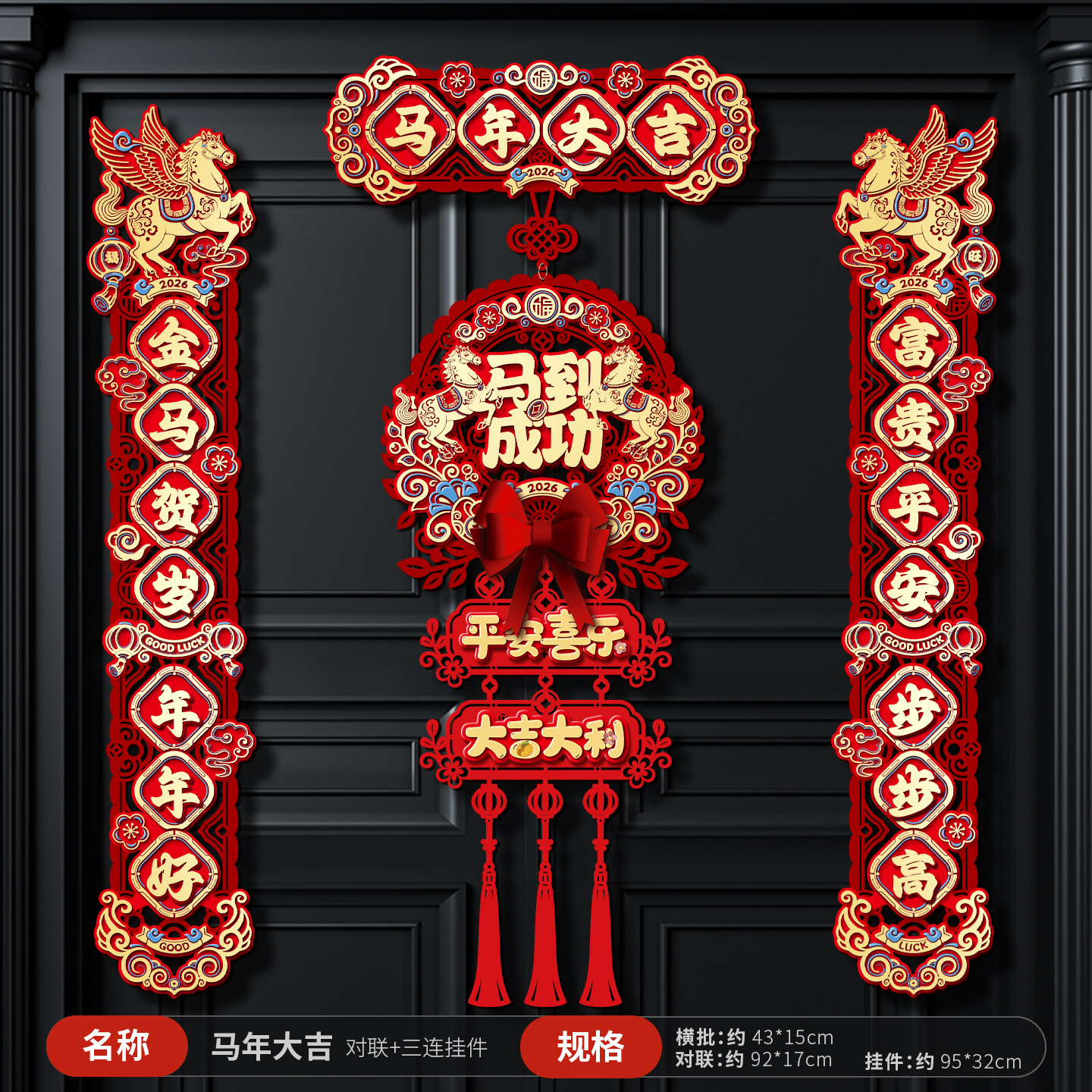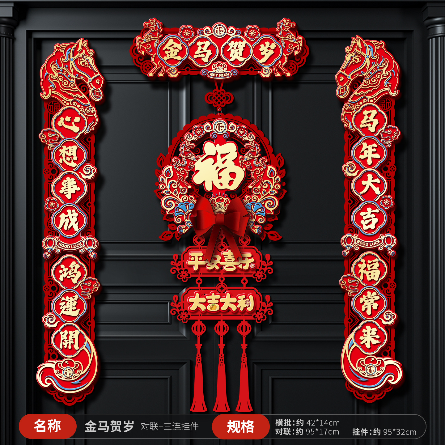 【马年大吉】 对联+三连挂件+对贴