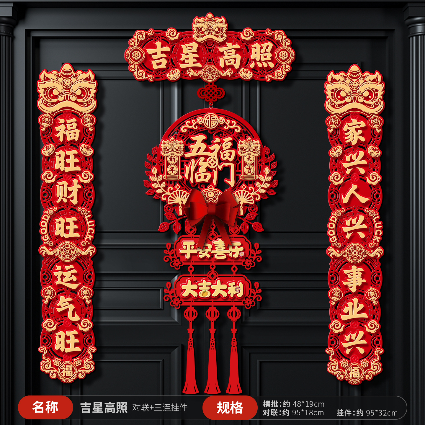【吉星高照】 对联+三连挂件+对贴