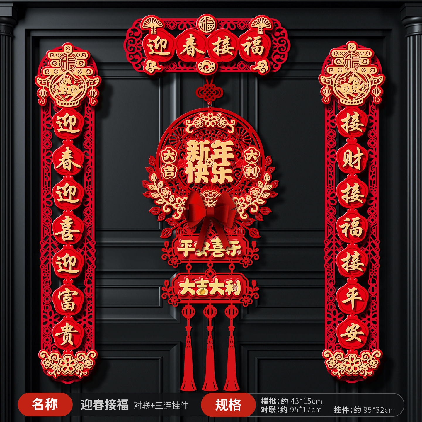 【迎春接福】 对联+三连挂件+对贴