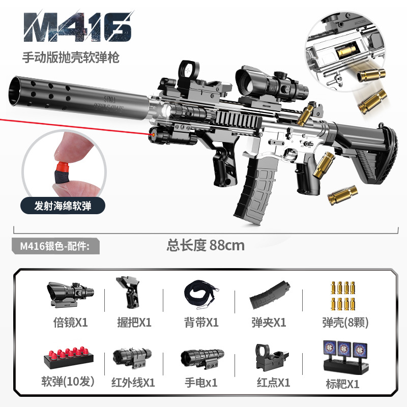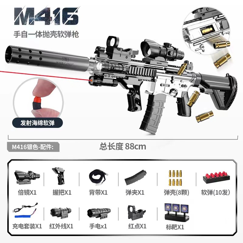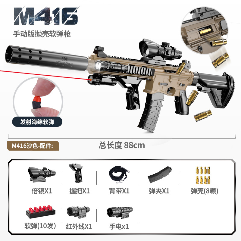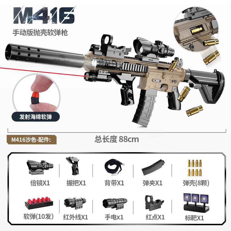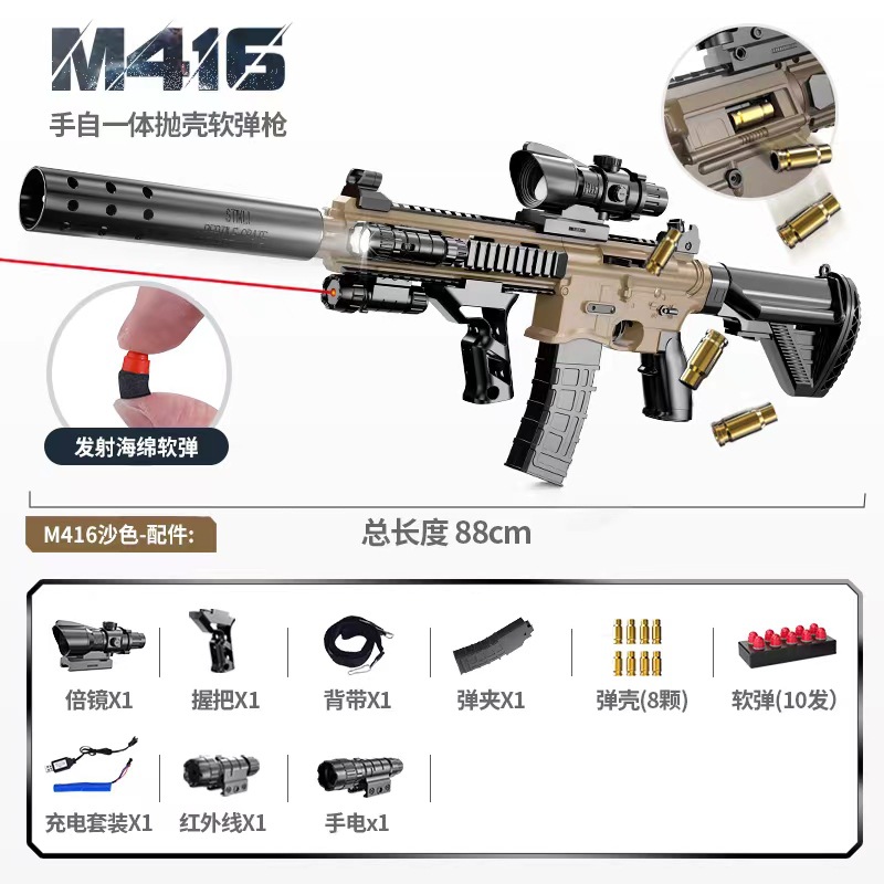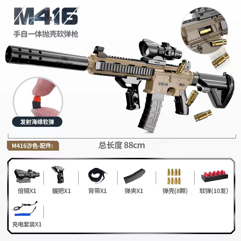 手自一体M416抛壳软弹枪电动连发仿真玩具枪儿童男孩突击步枪批发