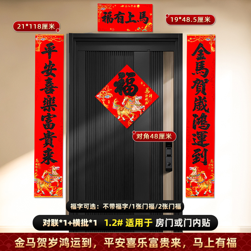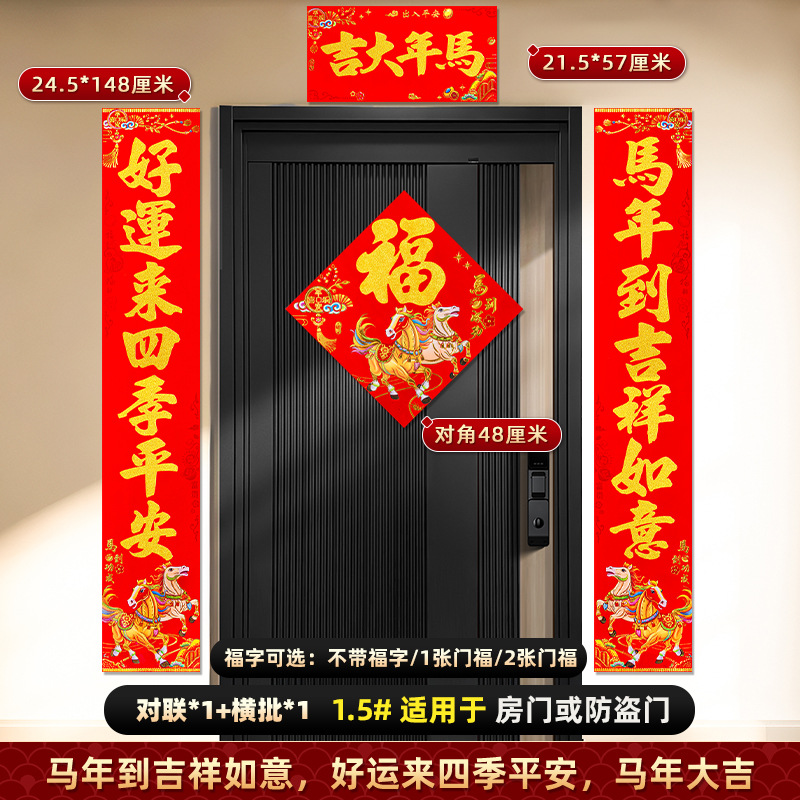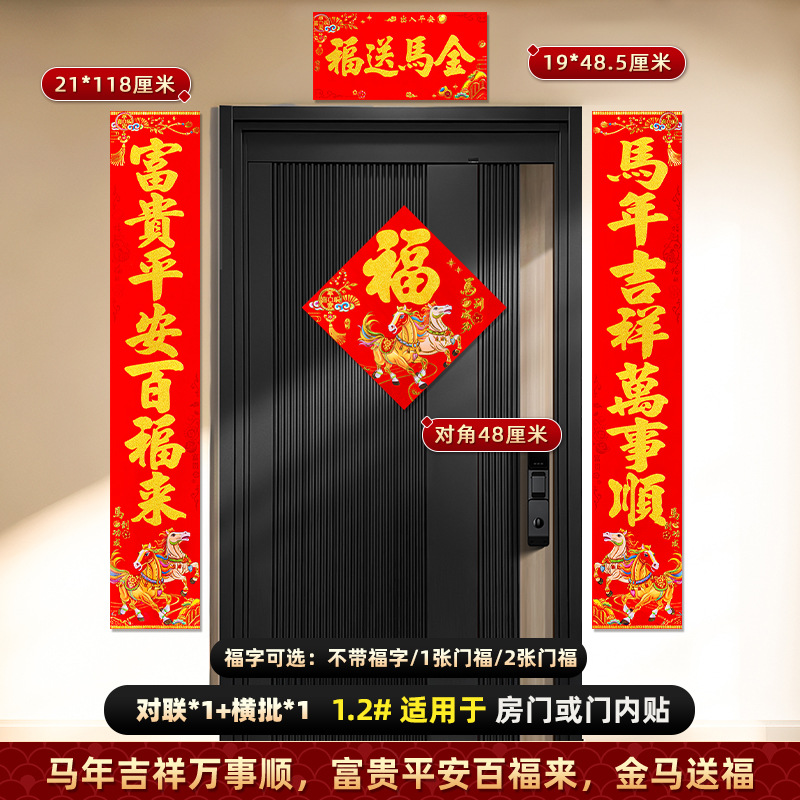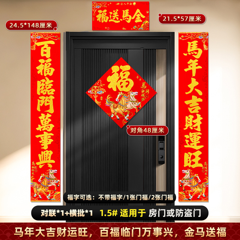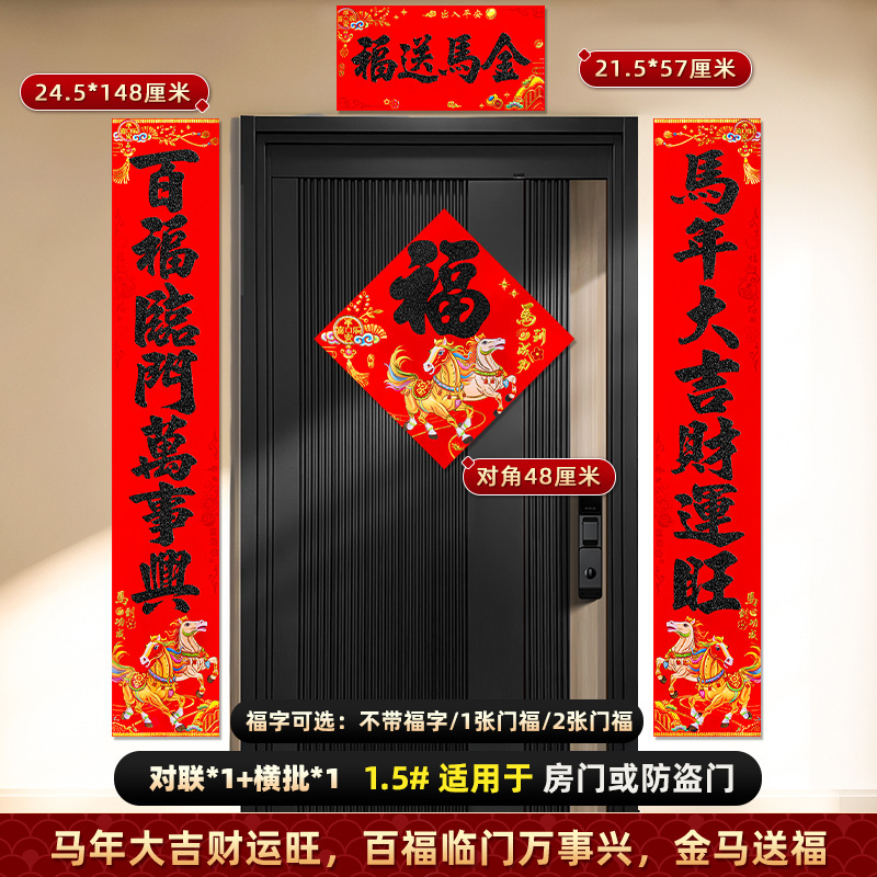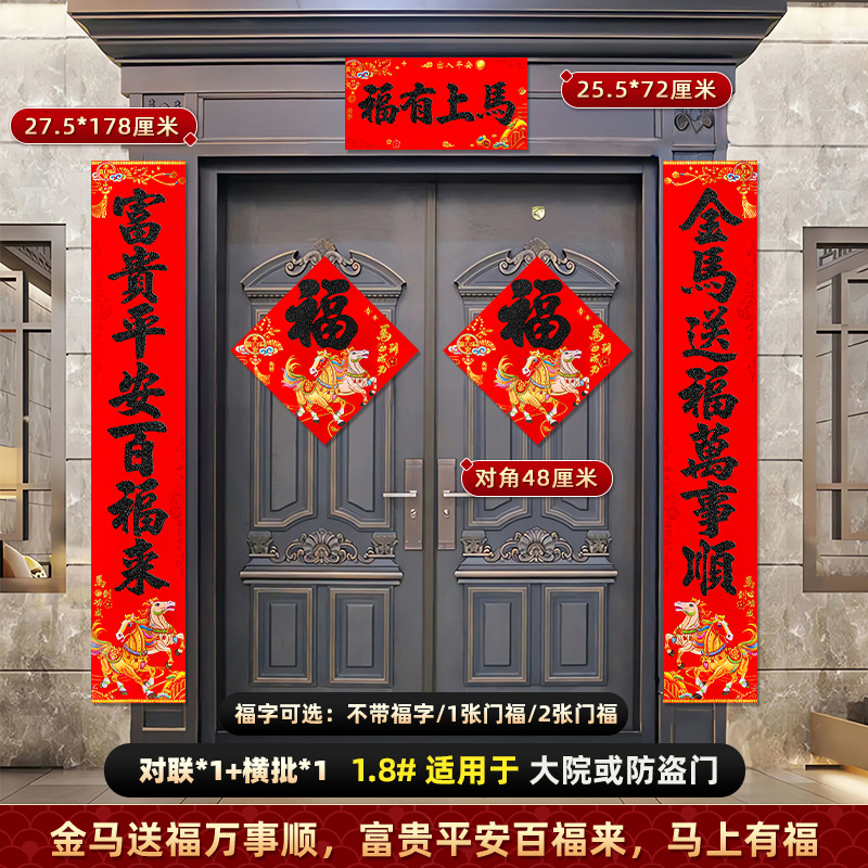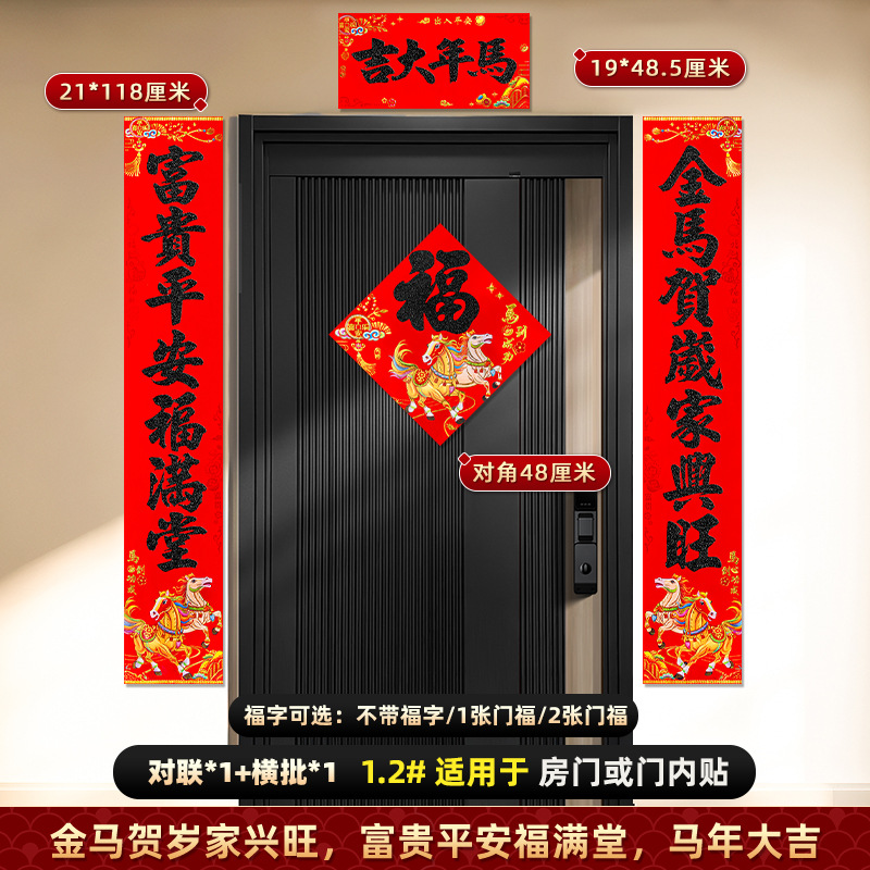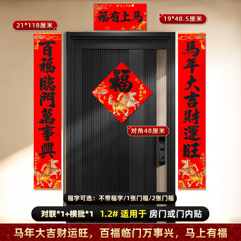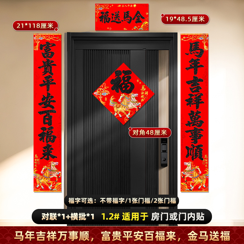 对联2026马年新款背胶门联植绒高档过年布置入户门新年装饰大春联