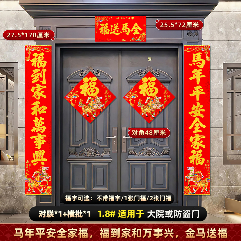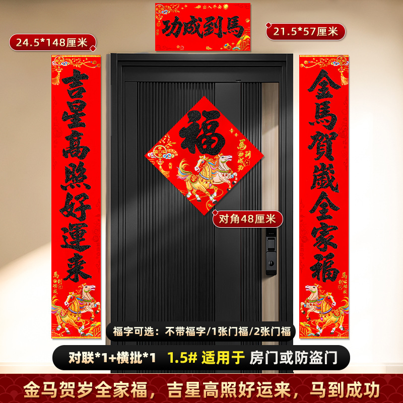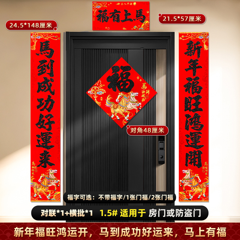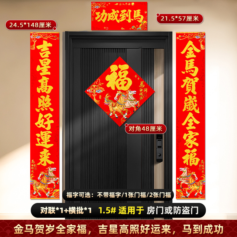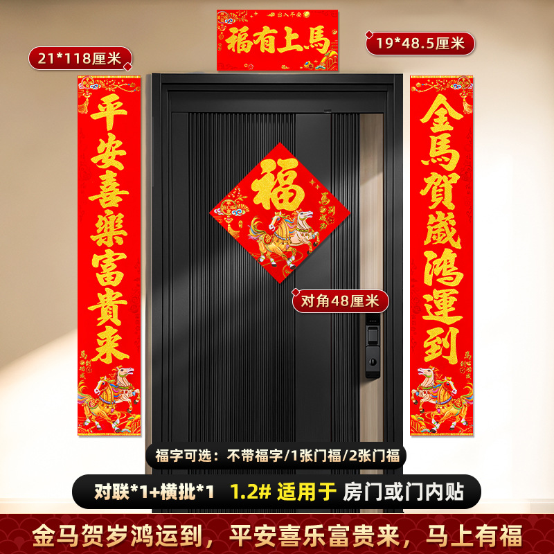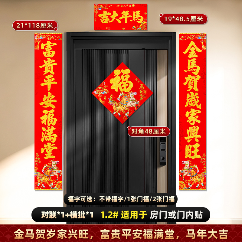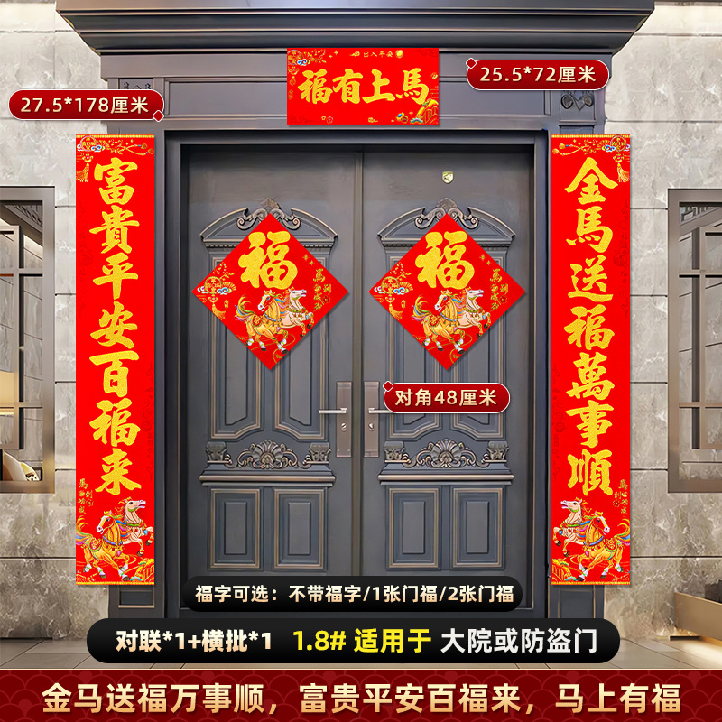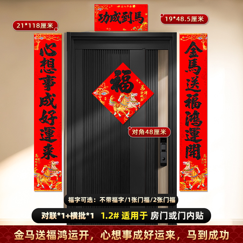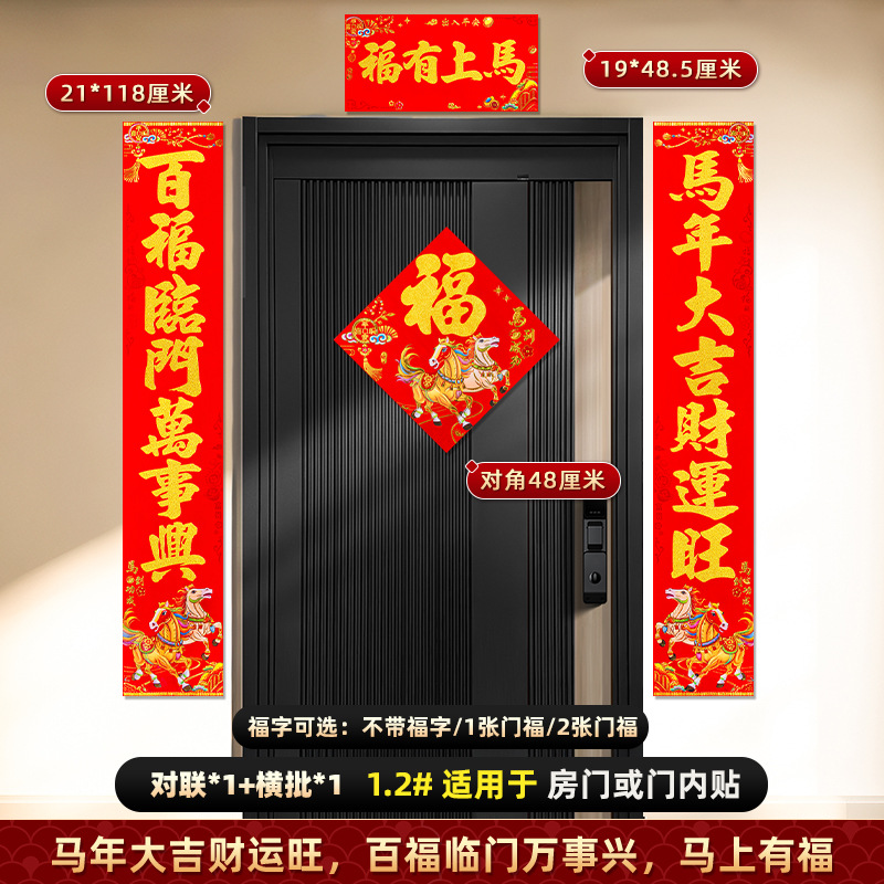 对联2026马年新款背胶门联植绒高档过年布置入户门新年装饰大春联
