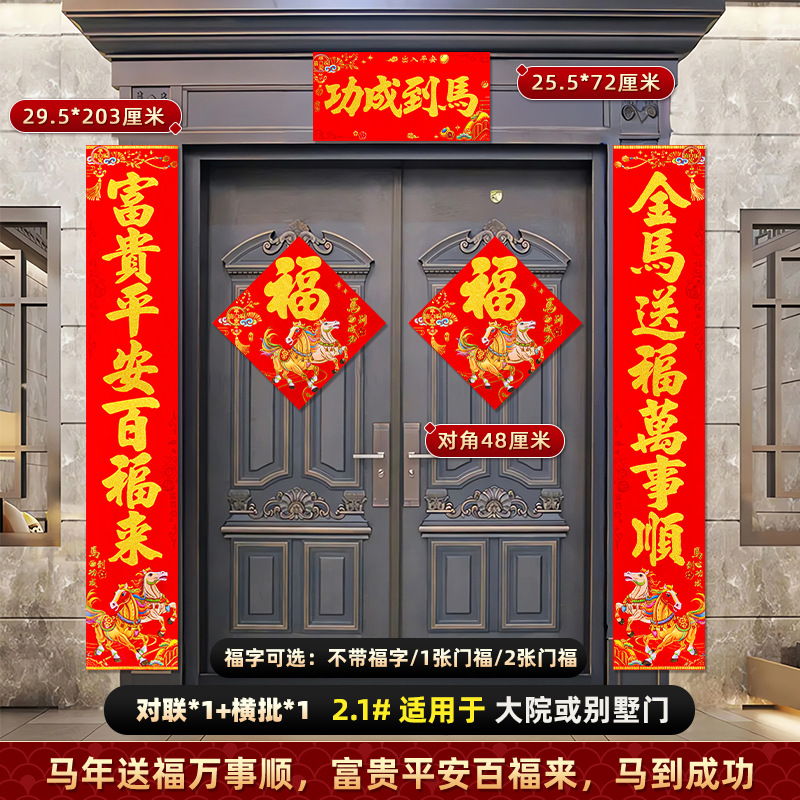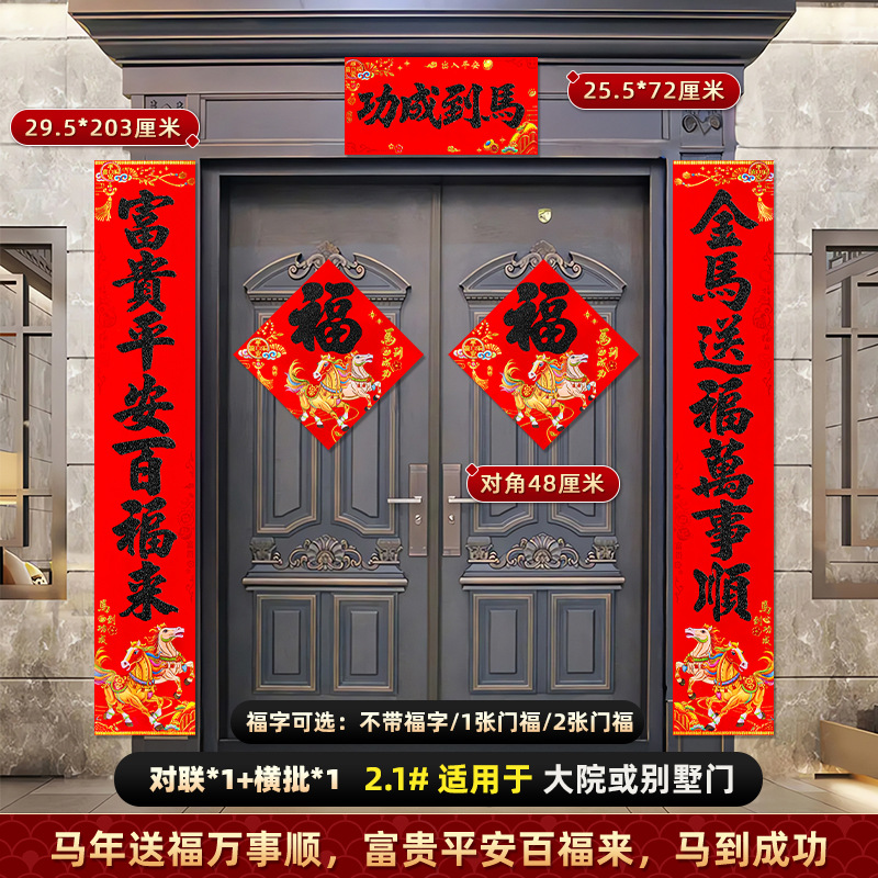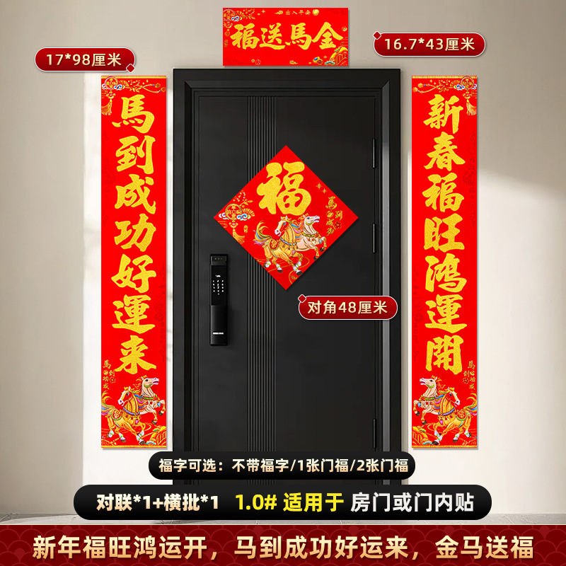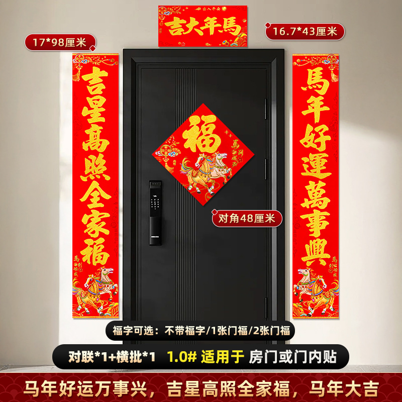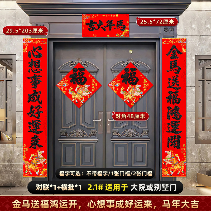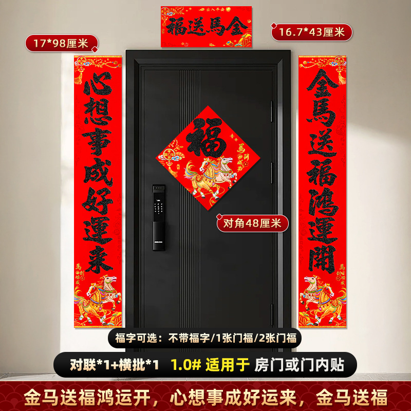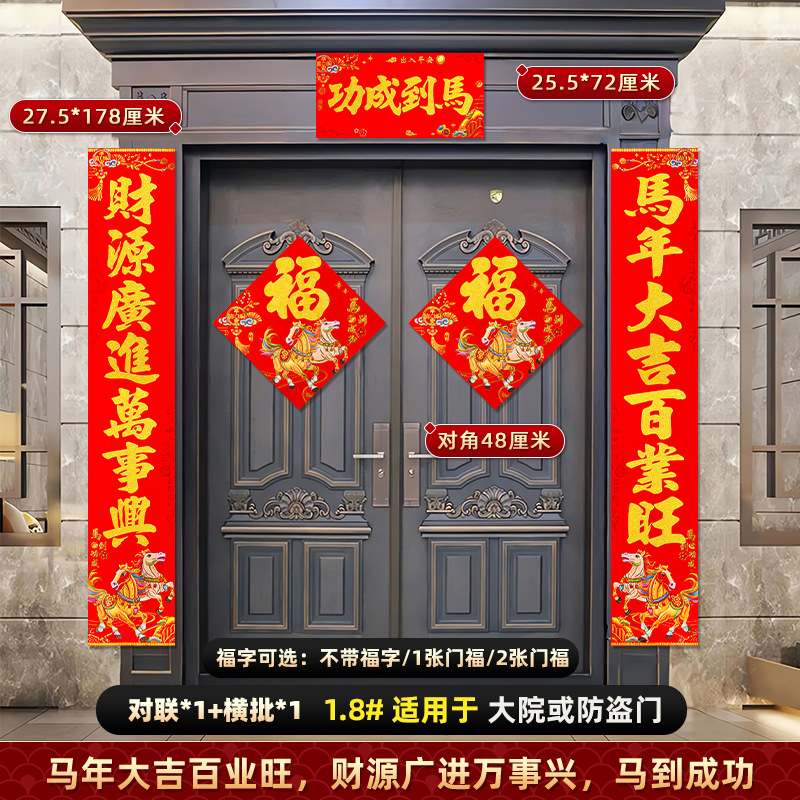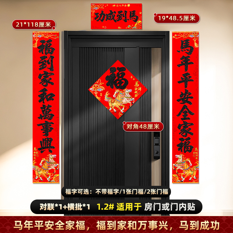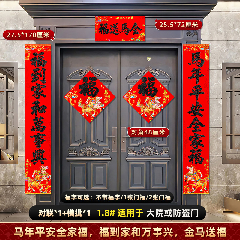 对联2026马年新款背胶门联植绒高档过年布置入户门新年装饰大春联