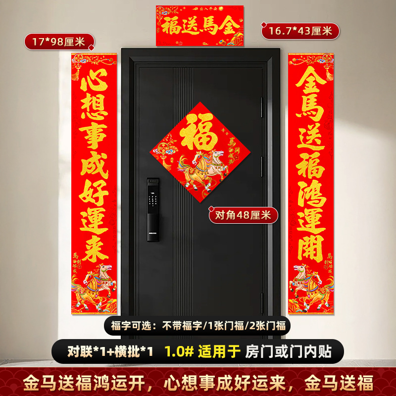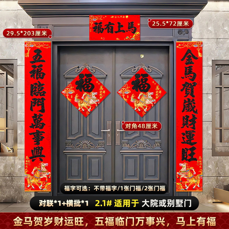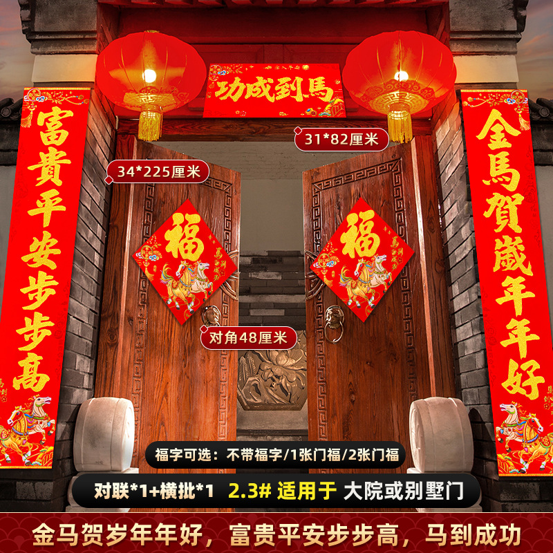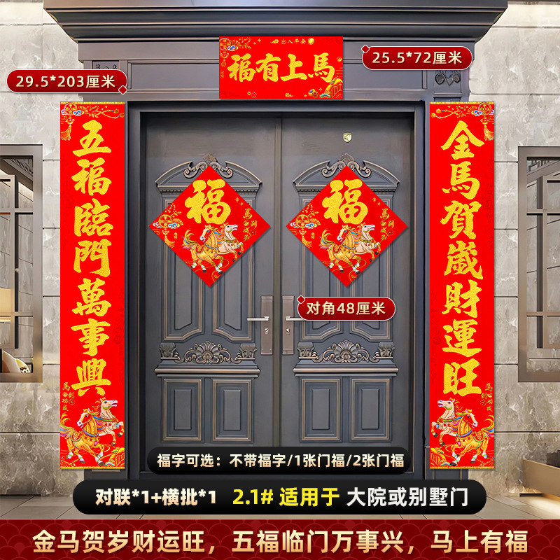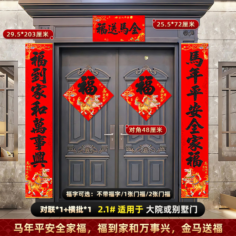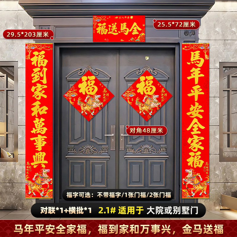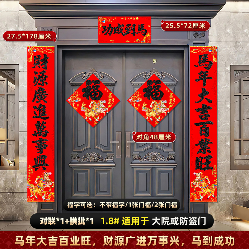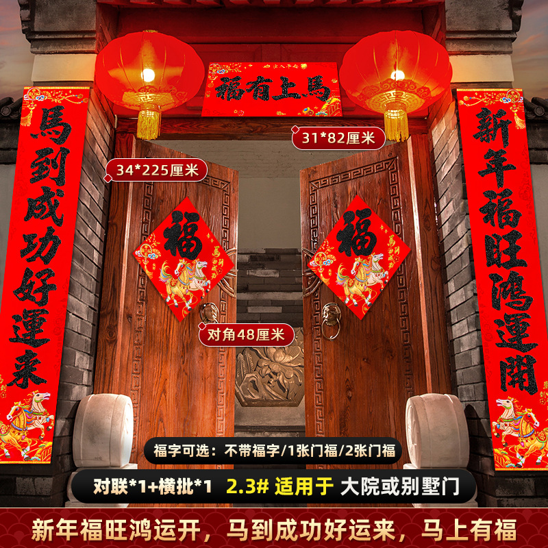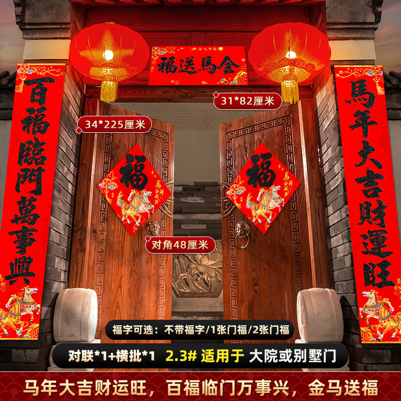 对联2026马年新款背胶门联植绒高档过年布置入户门新年装饰大春联