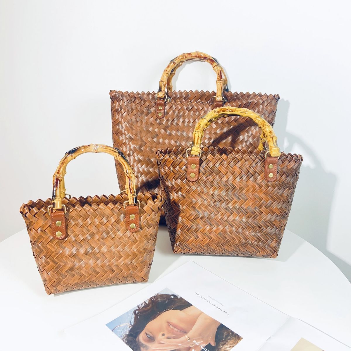 批发手工仿藤编织包竹节手提包中式轻奢伴手礼包大容量菜蓝子女包