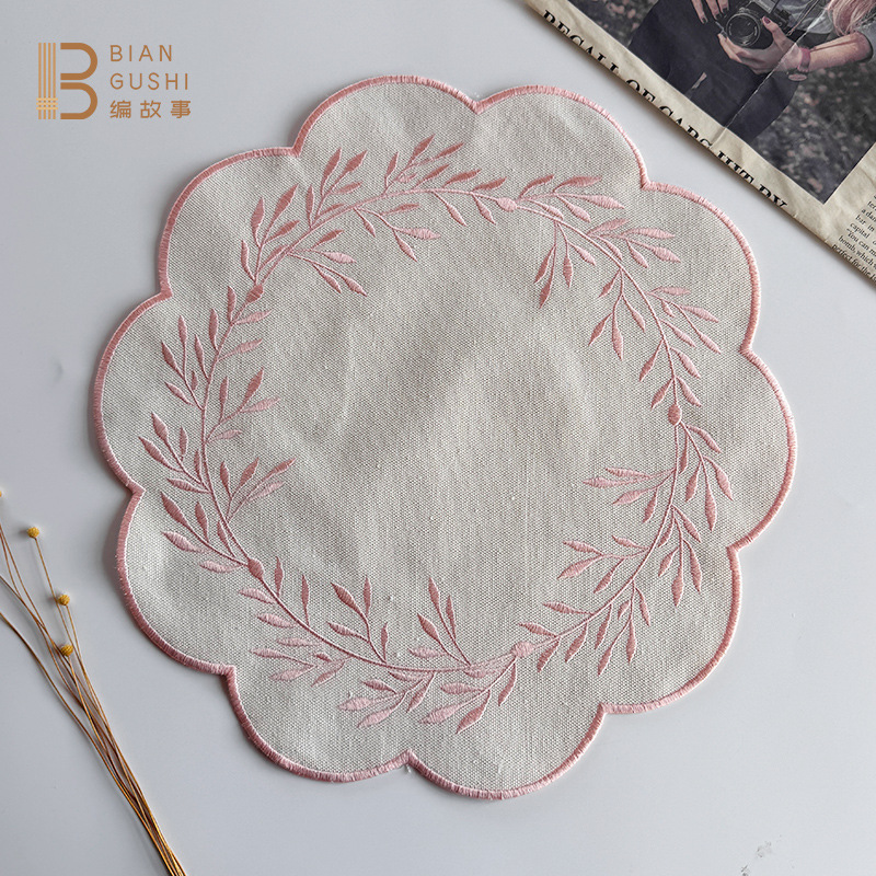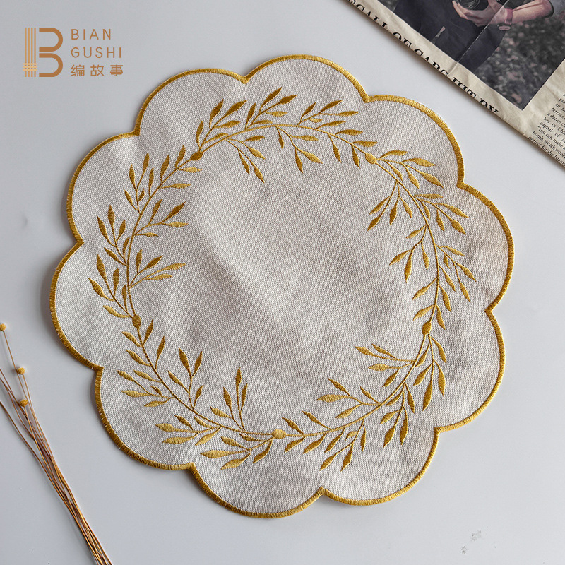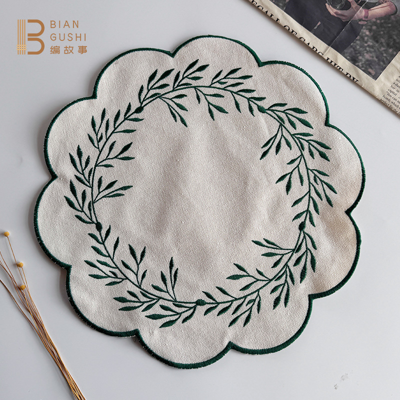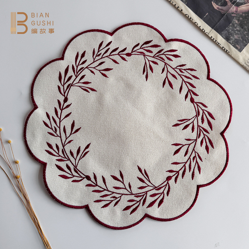 新中式刺绣棉麻餐垫国风隔热防烫垫拍摄道具摆件餐桌垫厨房餐桌垫