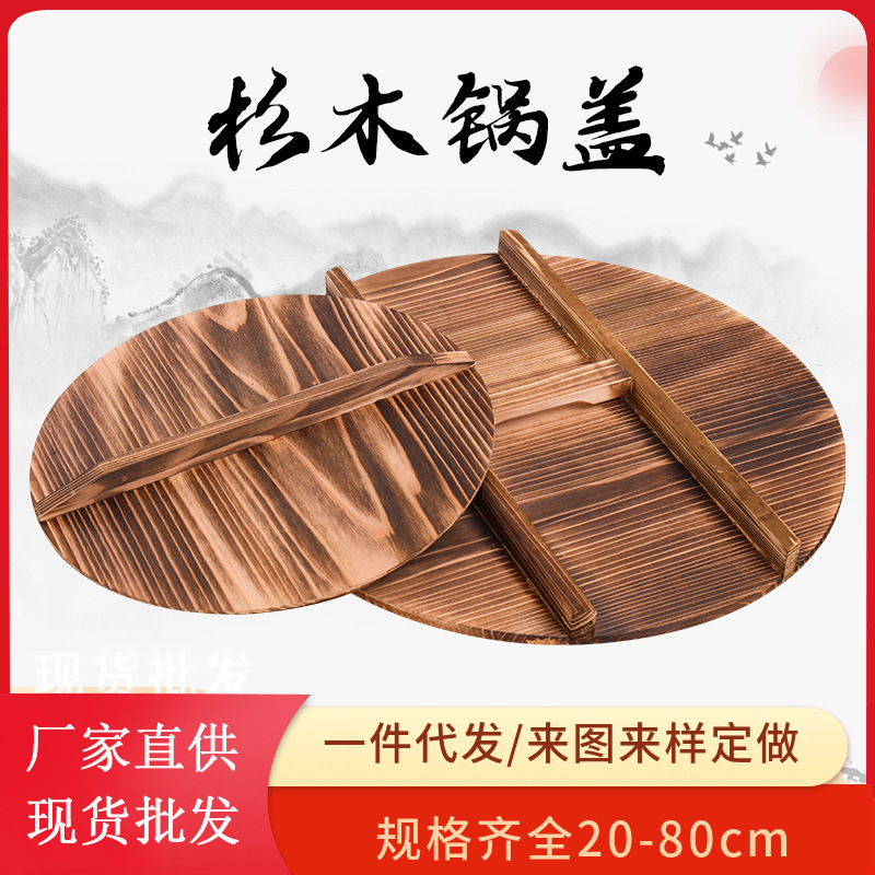 杉木锅盖家用圆形炒锅盖加厚碳化实木锅盖农村老式大锅盖水缸盖
