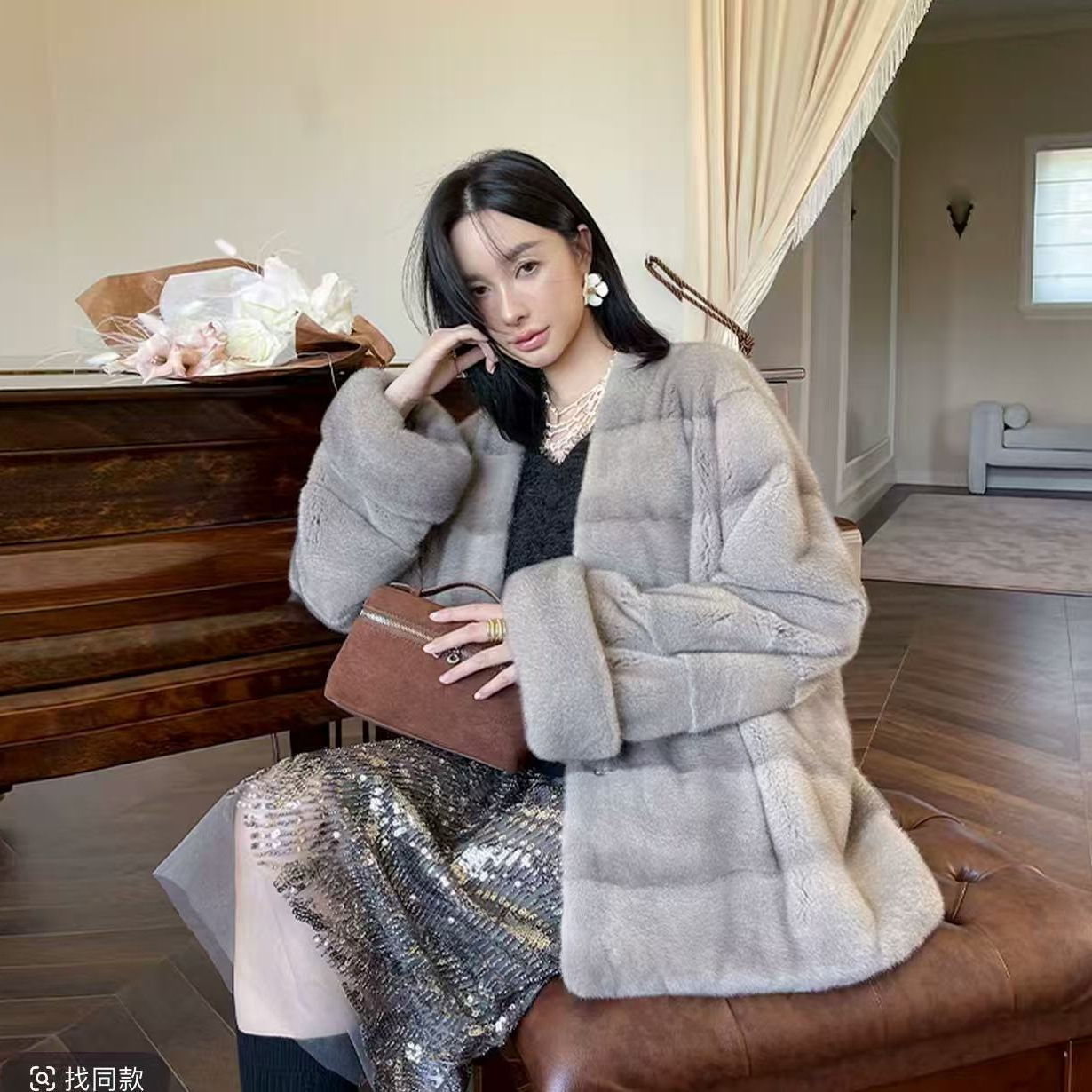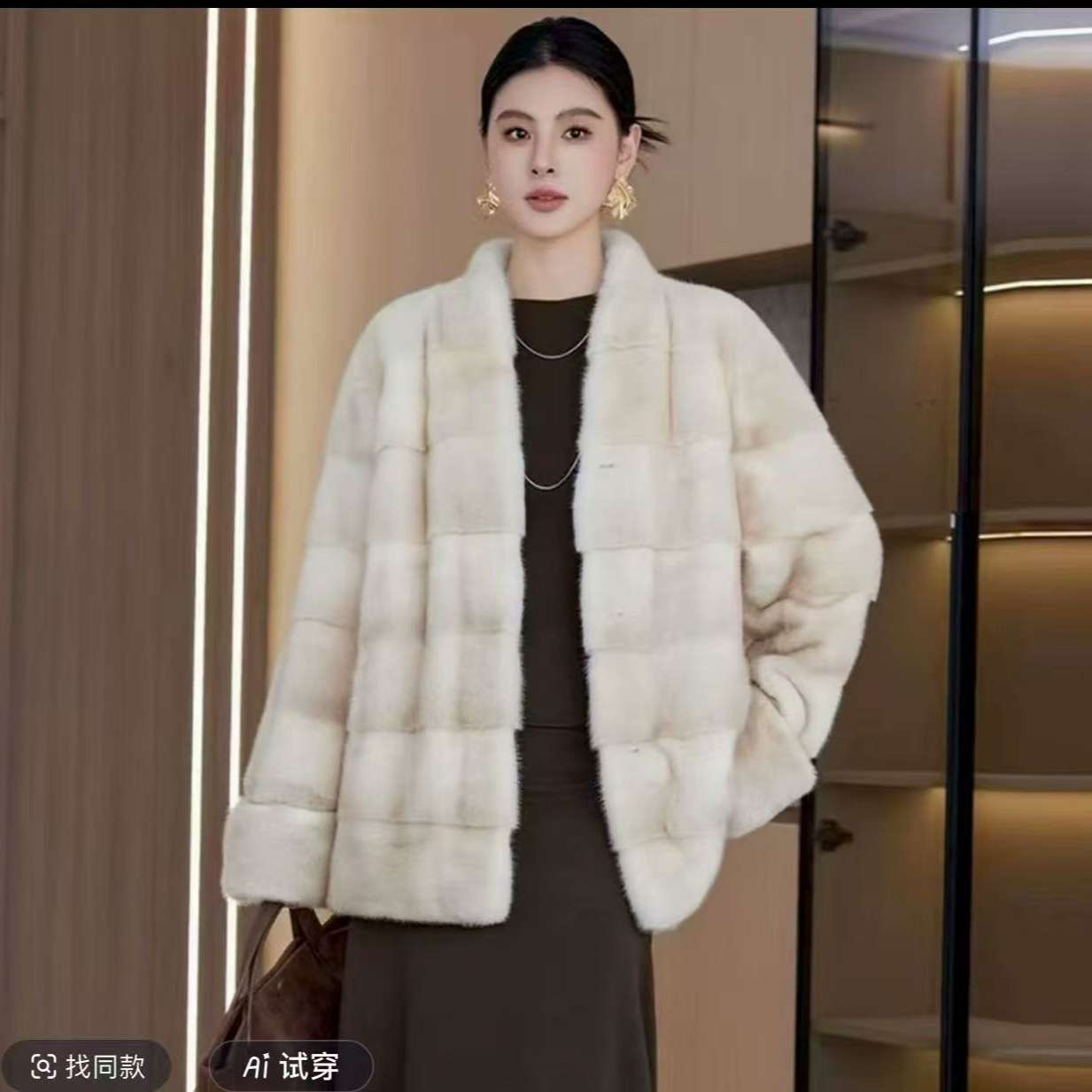 2025水貂全新貂皮大衣女整貂中长款2025横排N立领新款皮草外套