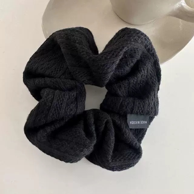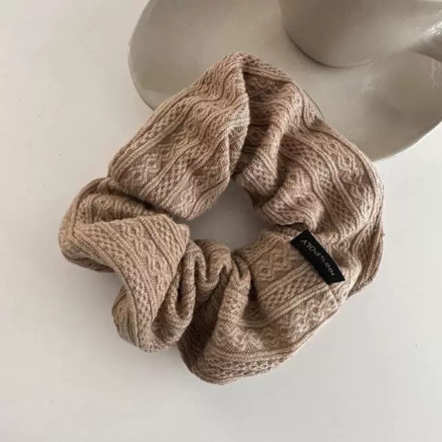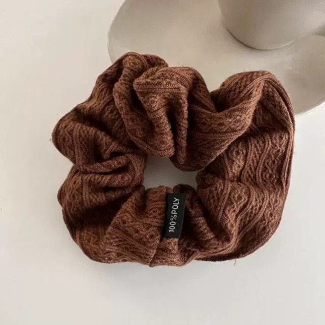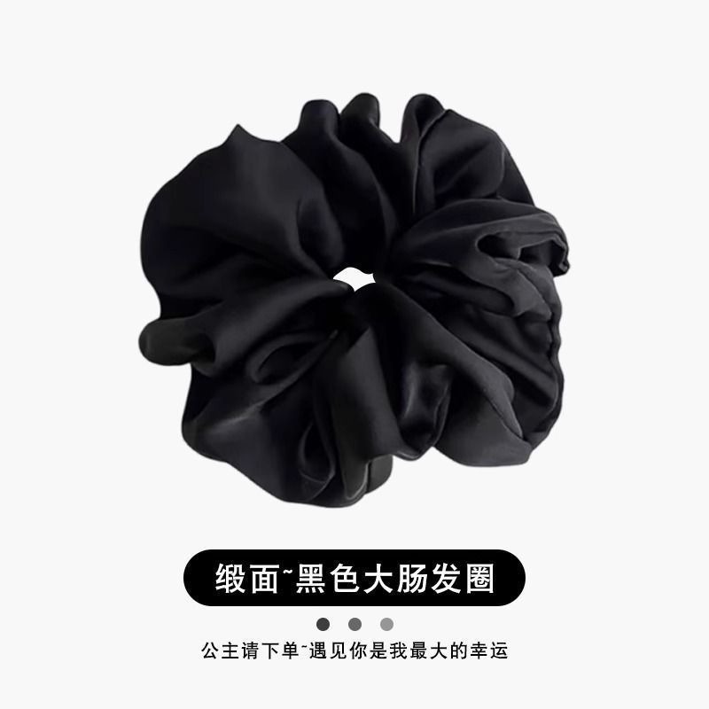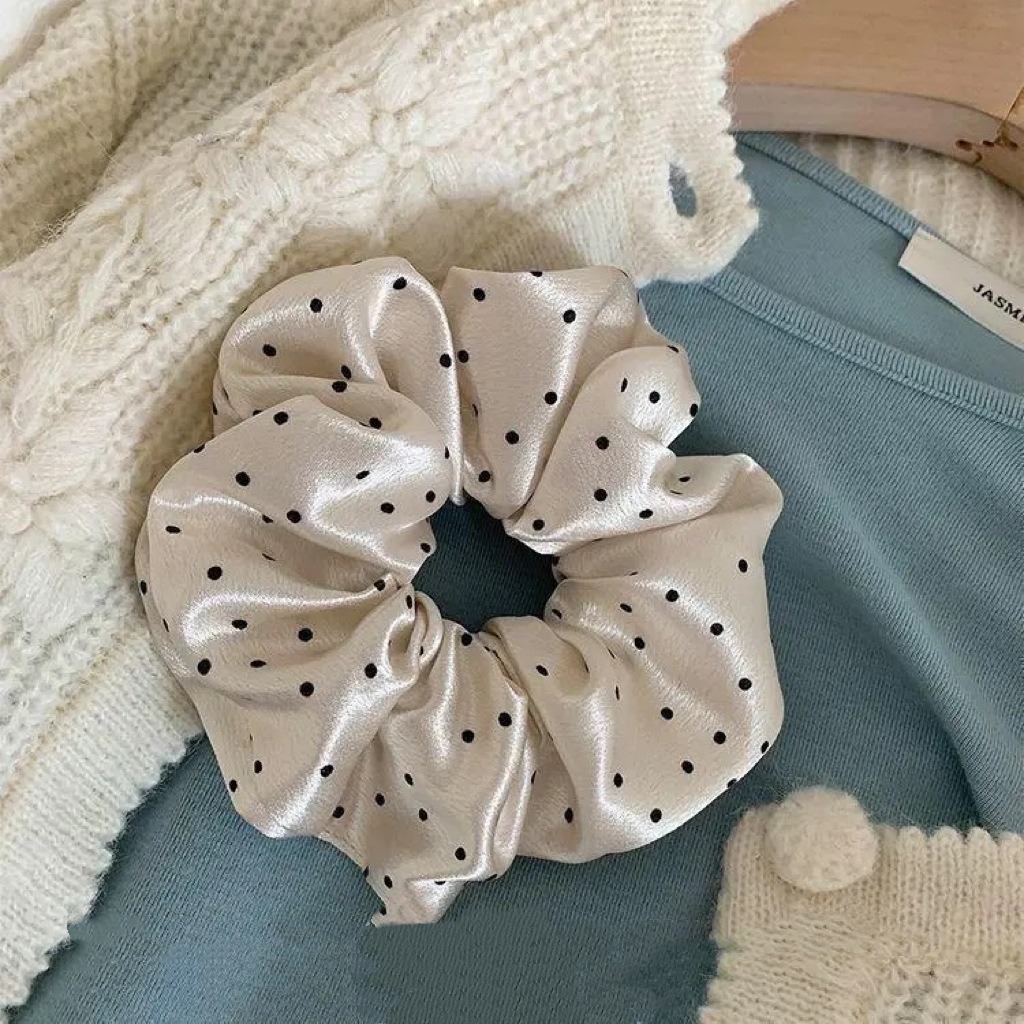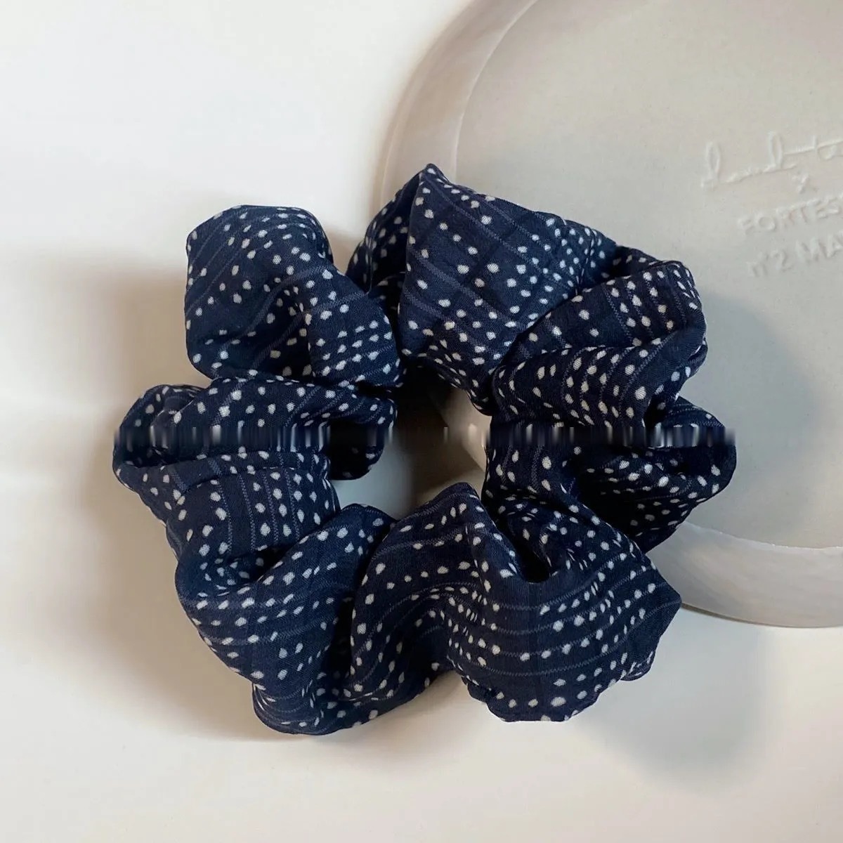 森系复古布艺蓝色波点大肠发圈双层高级感丸子头发绳韩国少女头绳