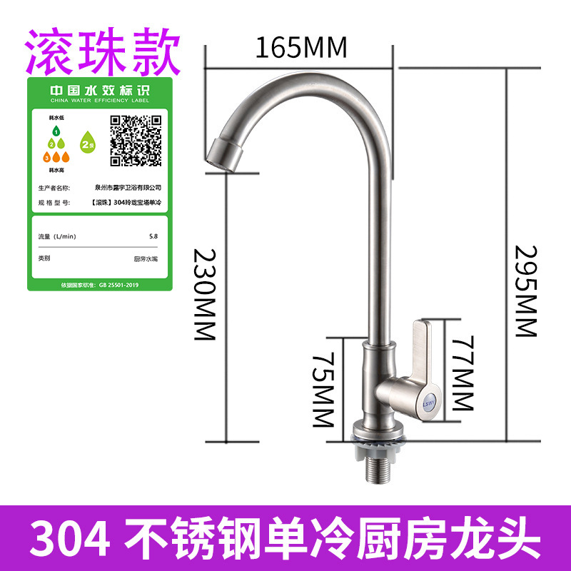 厨房单冷水龙头单管冷水304不锈钢洗菜盆水槽滚珠龙头卫浴批发