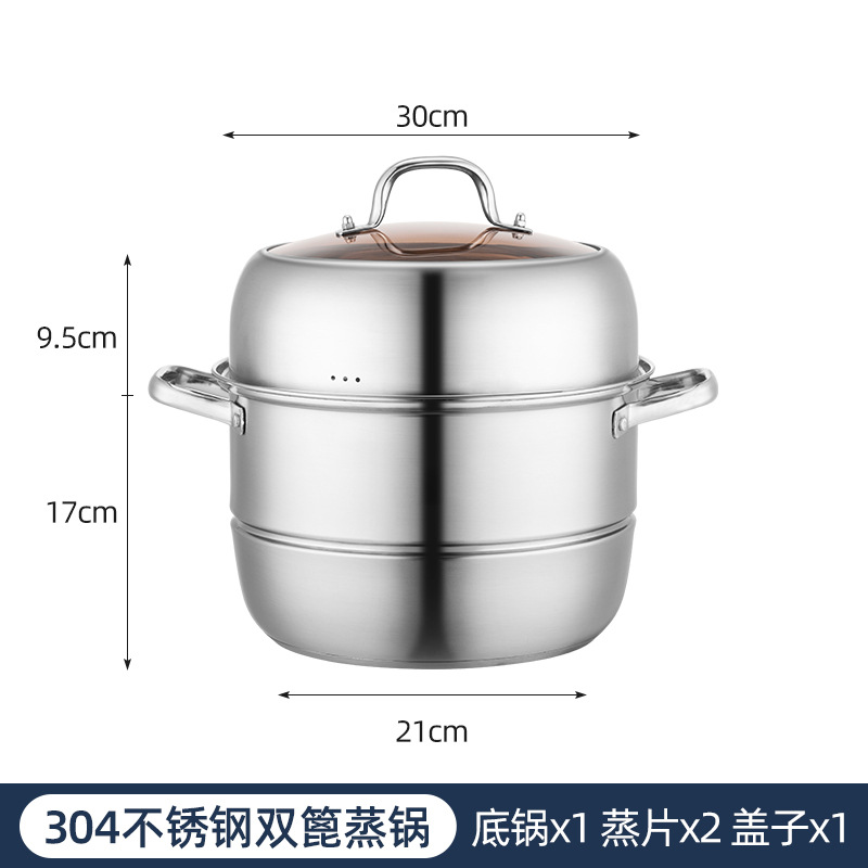 30cm加厚304不锈钢锅三层蒸锅复底蒸汤锅大容量电磁炉锅礼品锅具