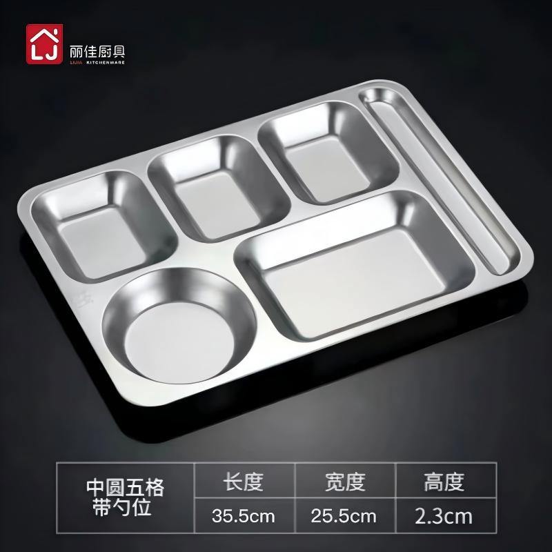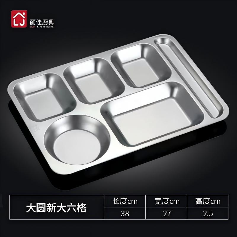 304不锈钢餐盘食堂中式儿童快餐盘成人菜盘学生加厚方形分格饭盘