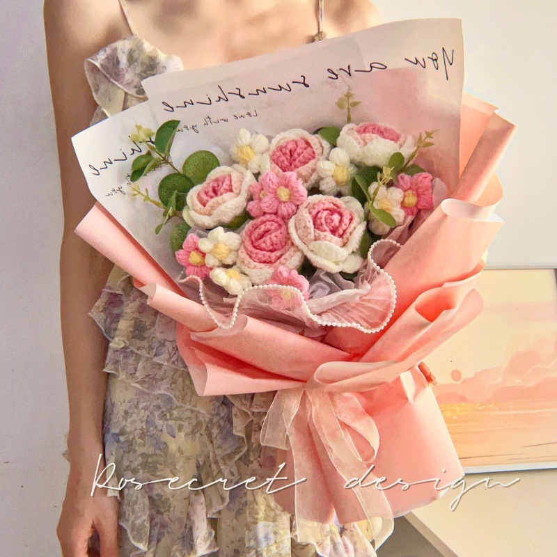 大束毛线手工针织花束成品创意女神玫瑰妇女节送女友闺蜜生日