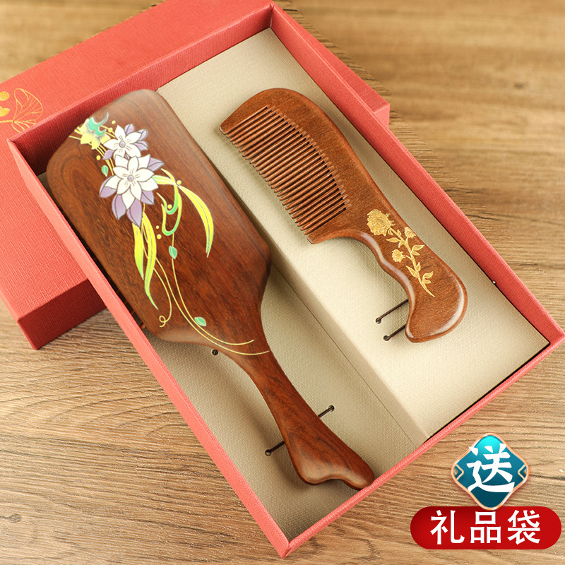 母亲节礼物檀木梳套装按摩梳送妈妈长辈经络梳木梳子养生伴手礼