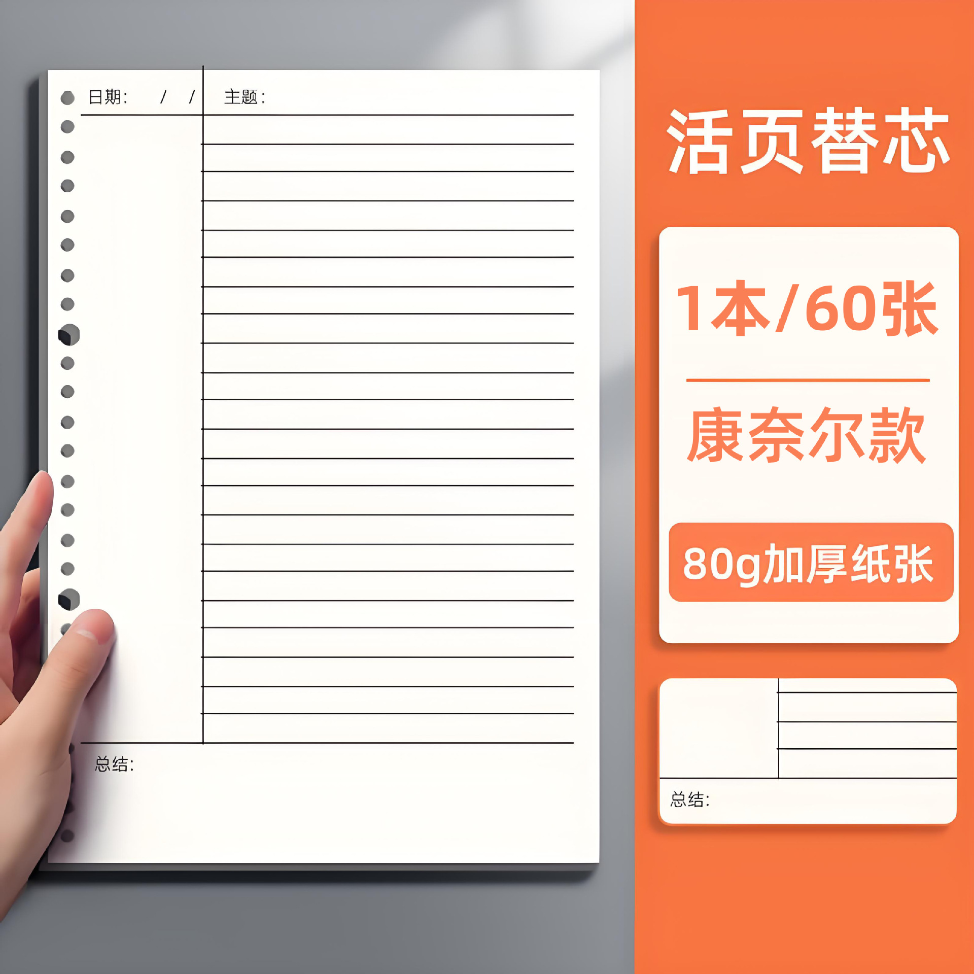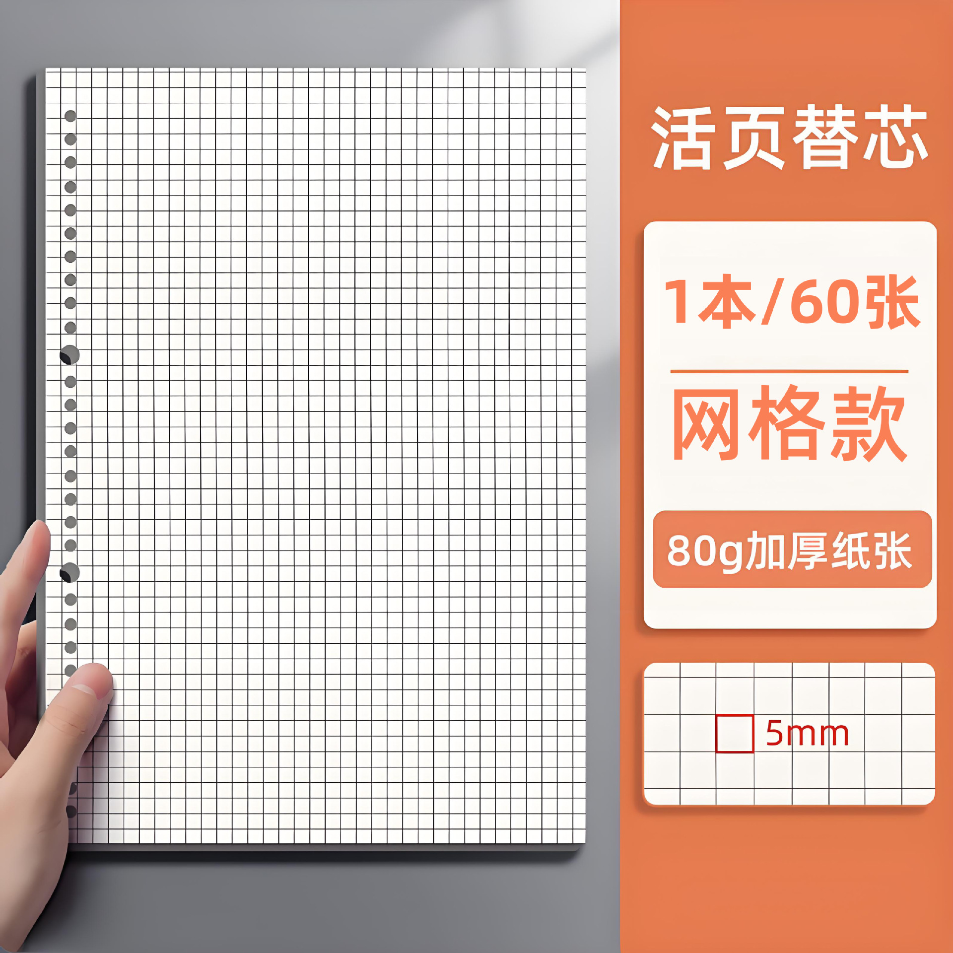 活页本替芯b5活页纸内芯a5横线a4空白纸网格英语20孔26孔30孔方格
