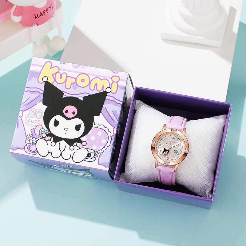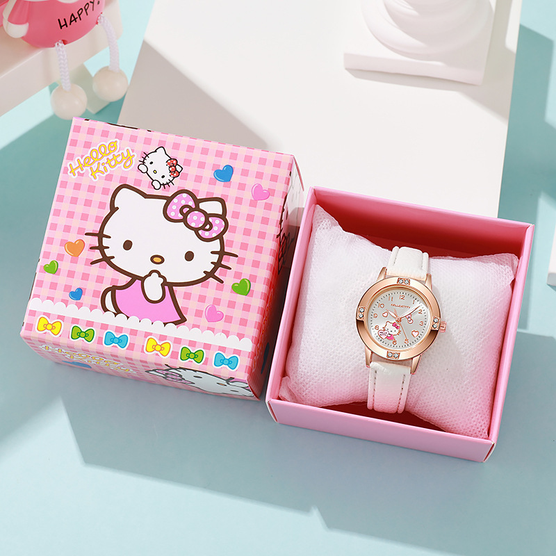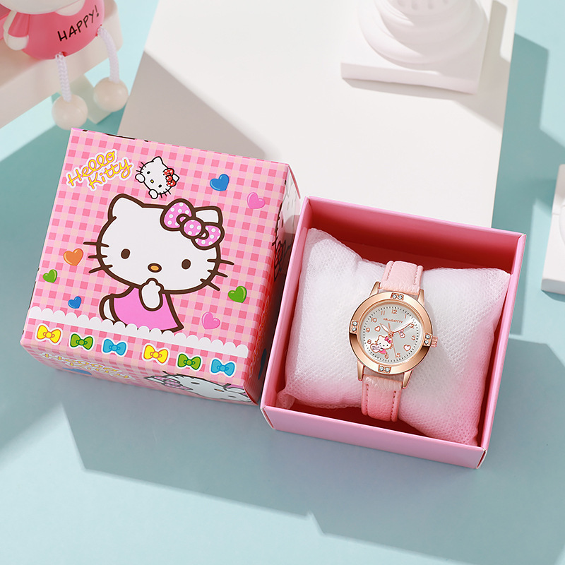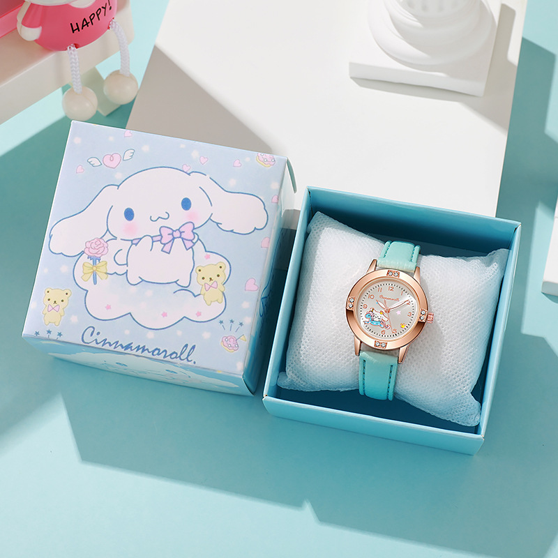 外贸热销玫瑰金镶钻皮带中学生手表女款三丽鸥石英表跨境现货批发