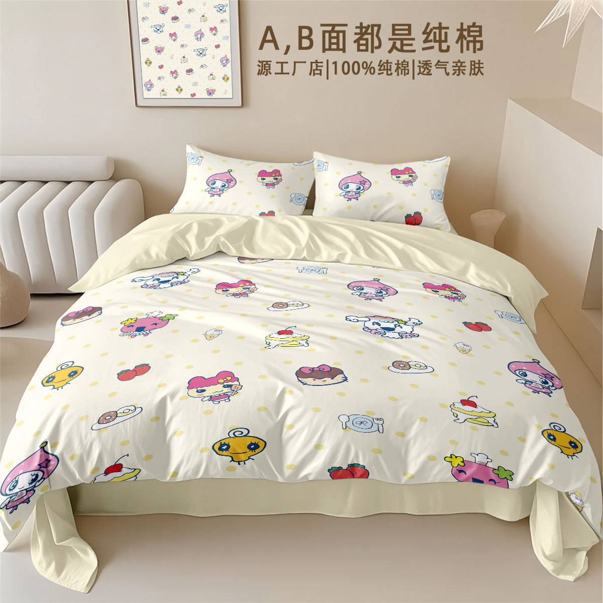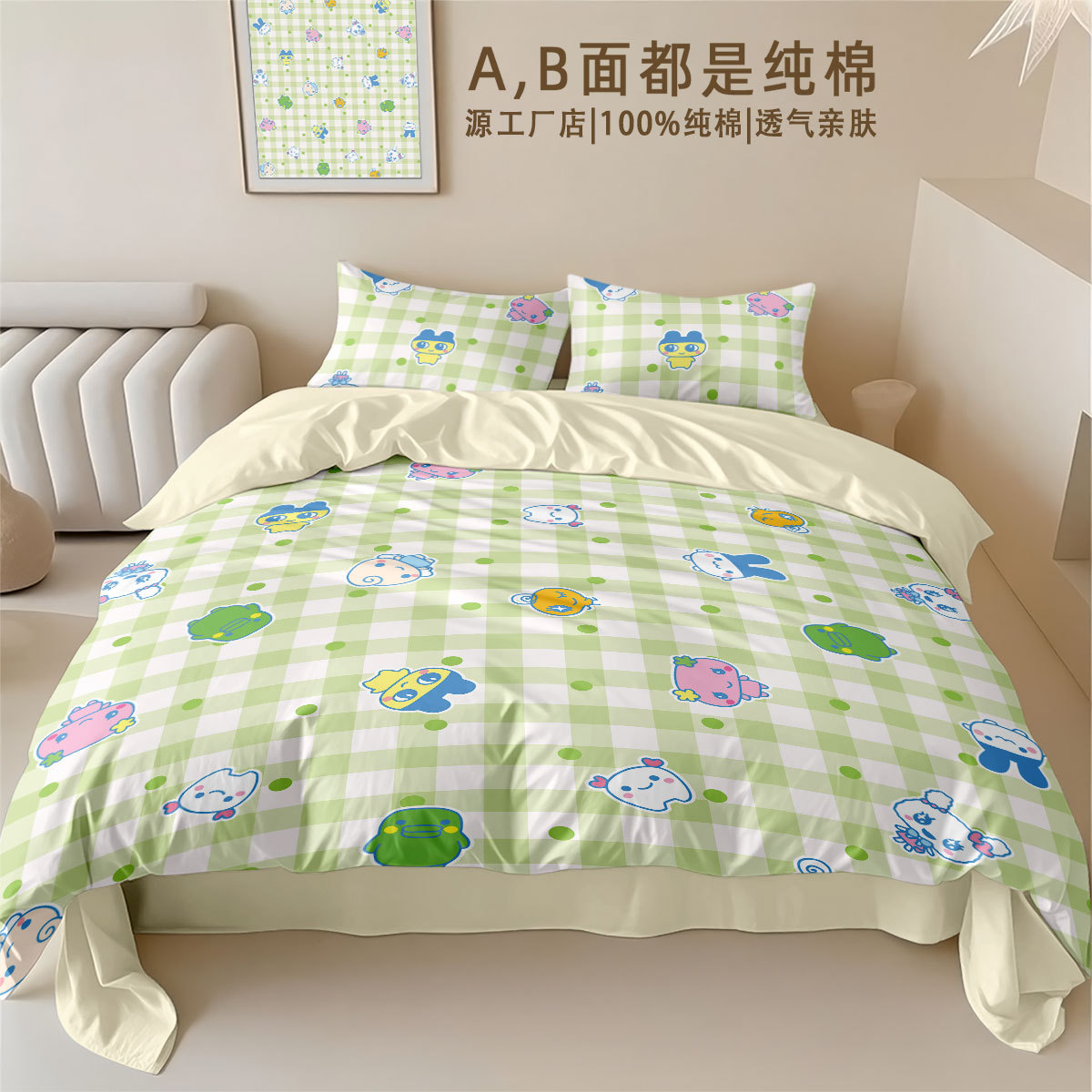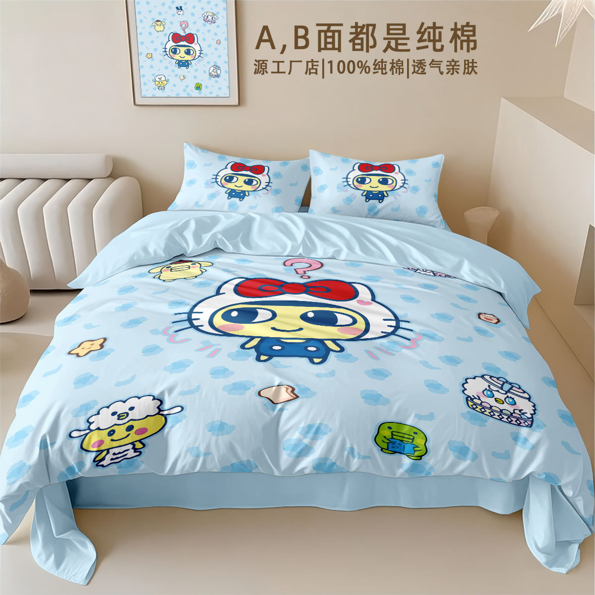 拓麻歌子四件套纯棉被套ins可爱卡通床品100全棉床单笠宿舍三件套
