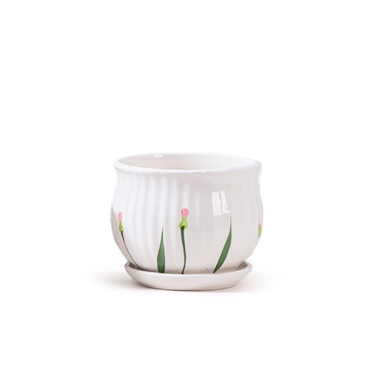 奶油风陶瓷花盆植物家用盆栽精致白色ins轻奢创意兰花多肉绿植盆