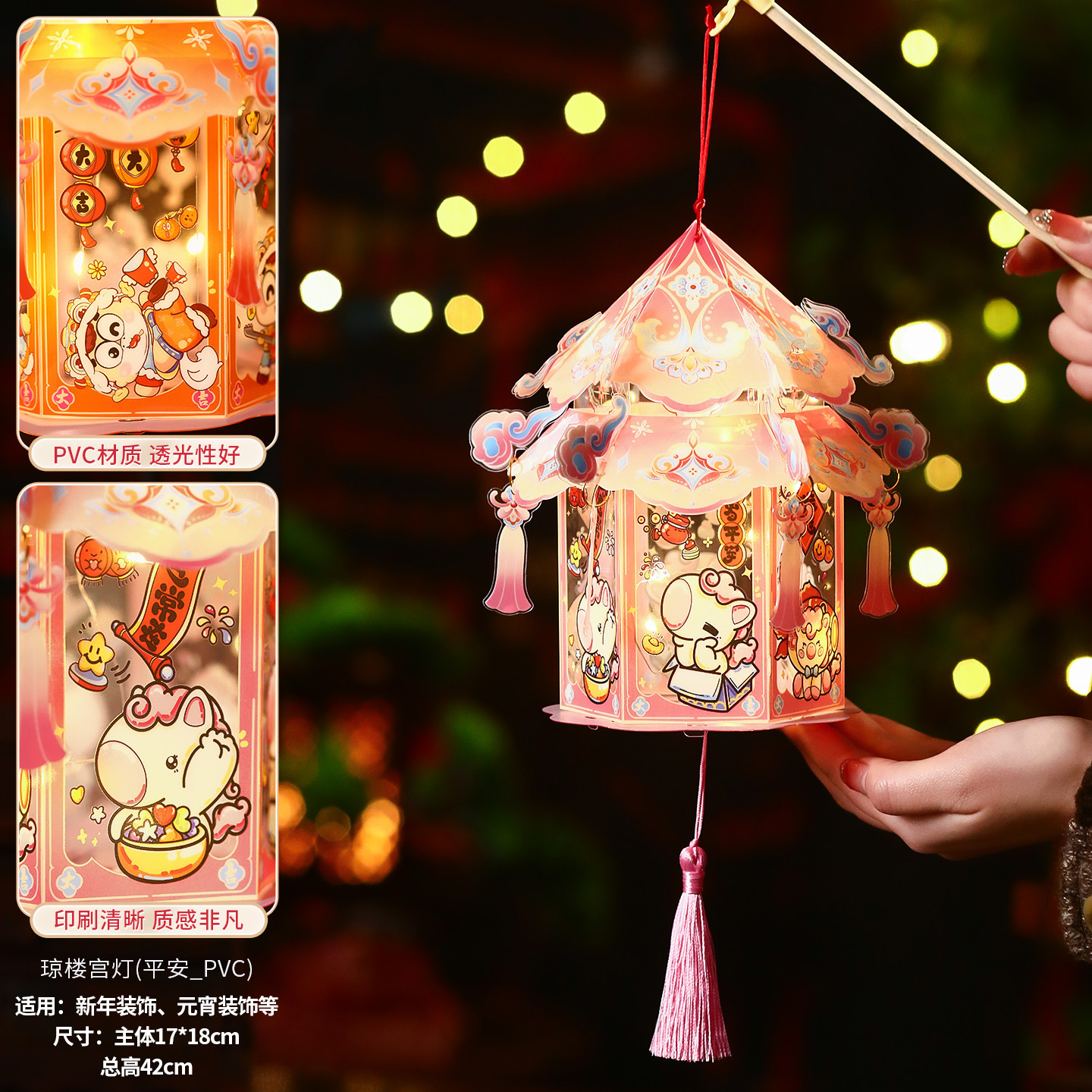 【平安喜乐】手提琼楼灯笼