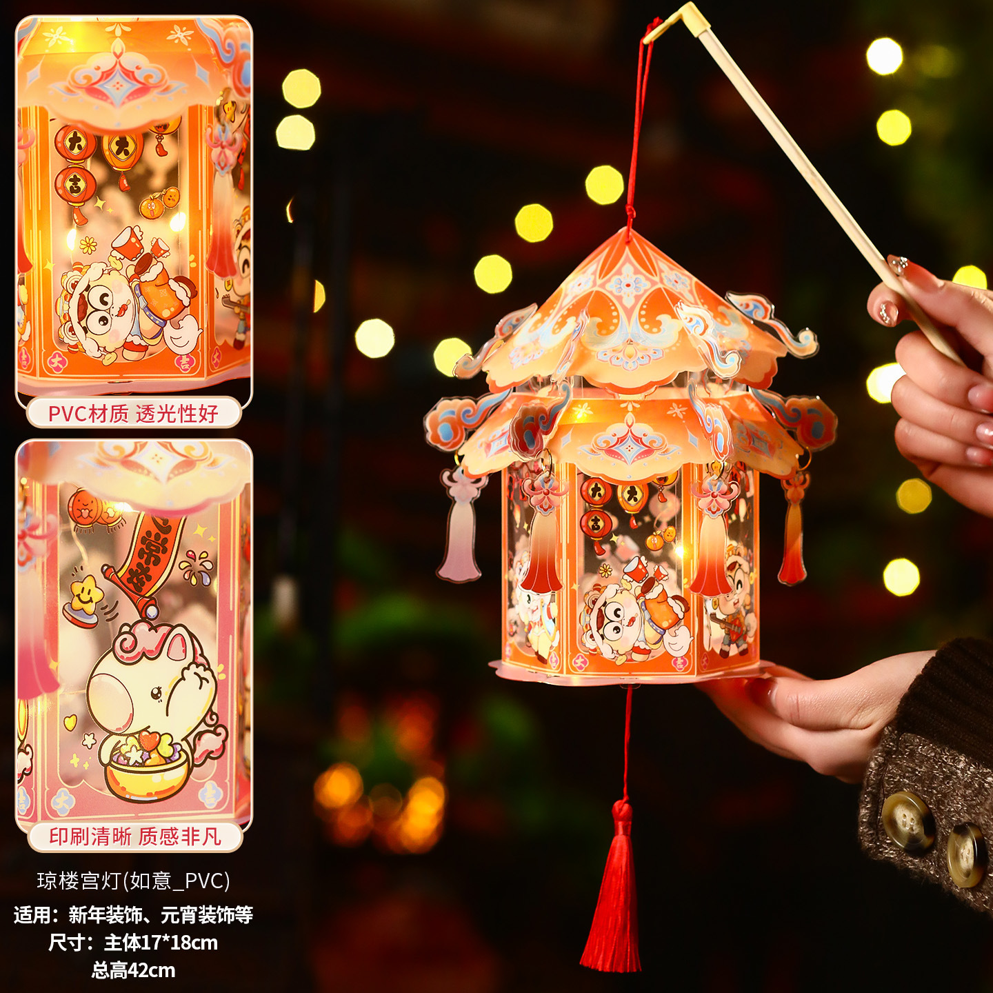 【吉祥如意】手提琼楼灯笼