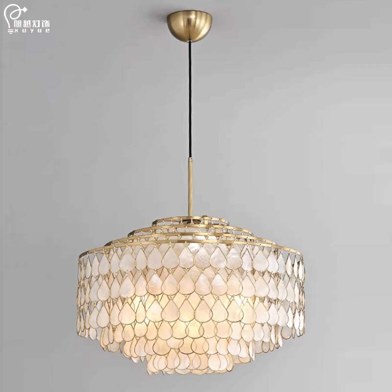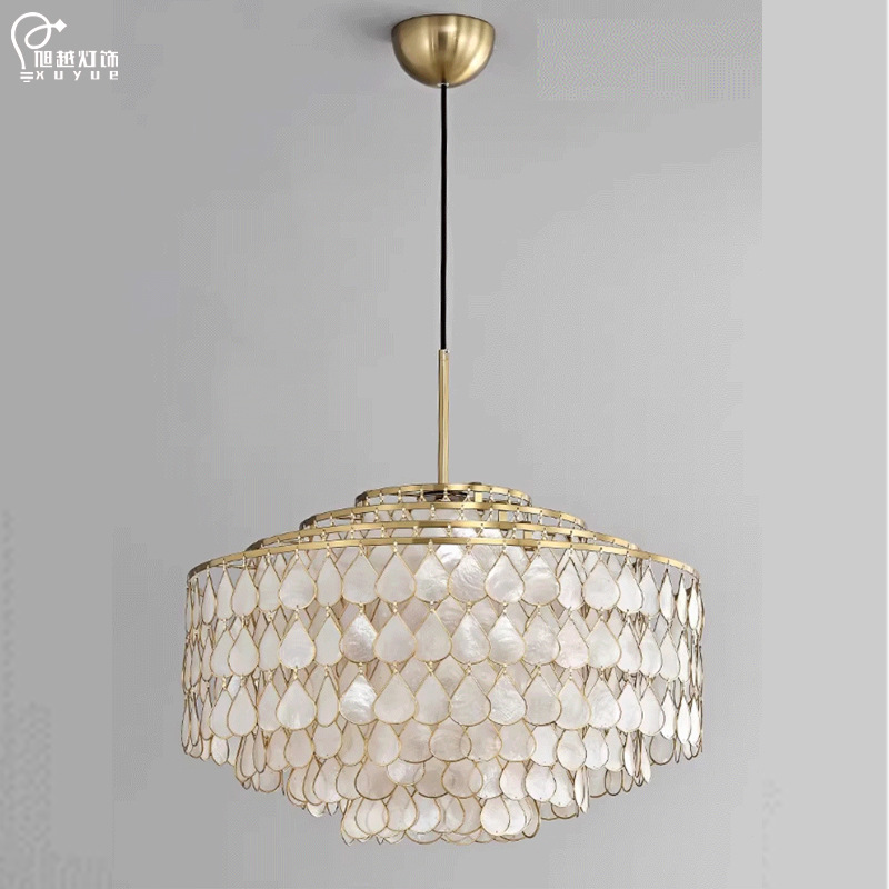 跨境法式贝壳吊灯美式复古侘寂中古风餐厅灯具客厅高级感轻奢卧室