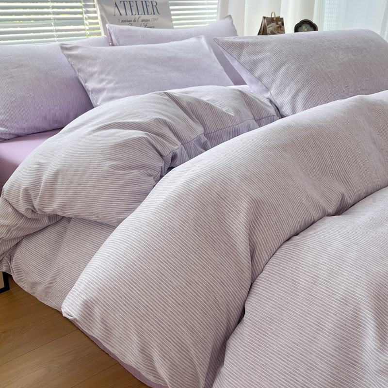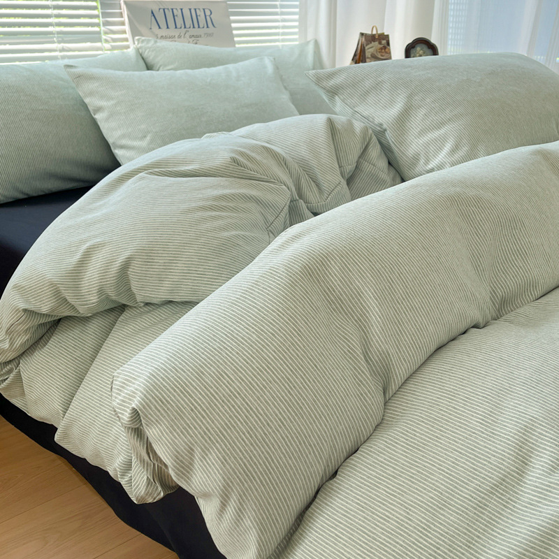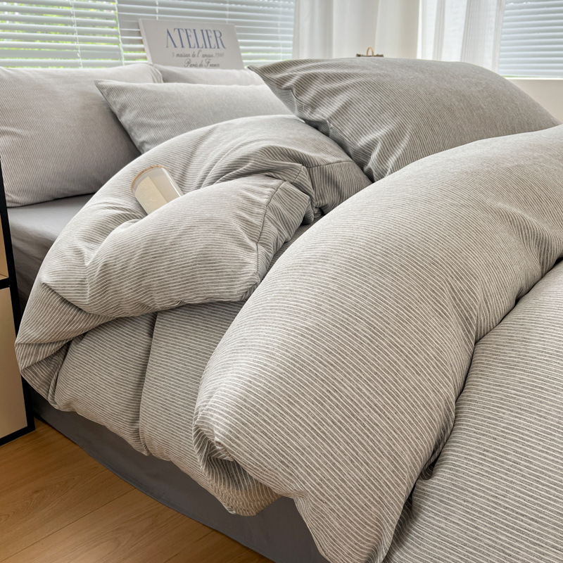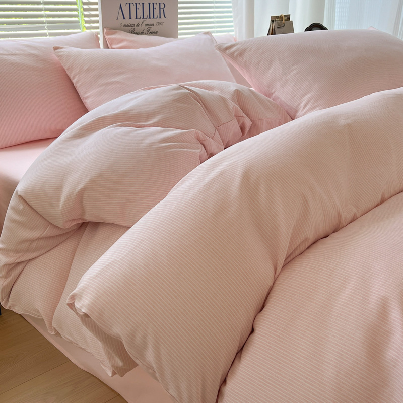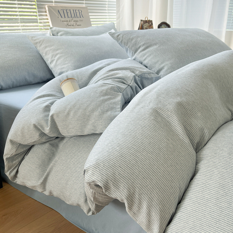 无印风纯棉床上四件套全棉被套博主同款条纹水洗棉被罩学生三件套