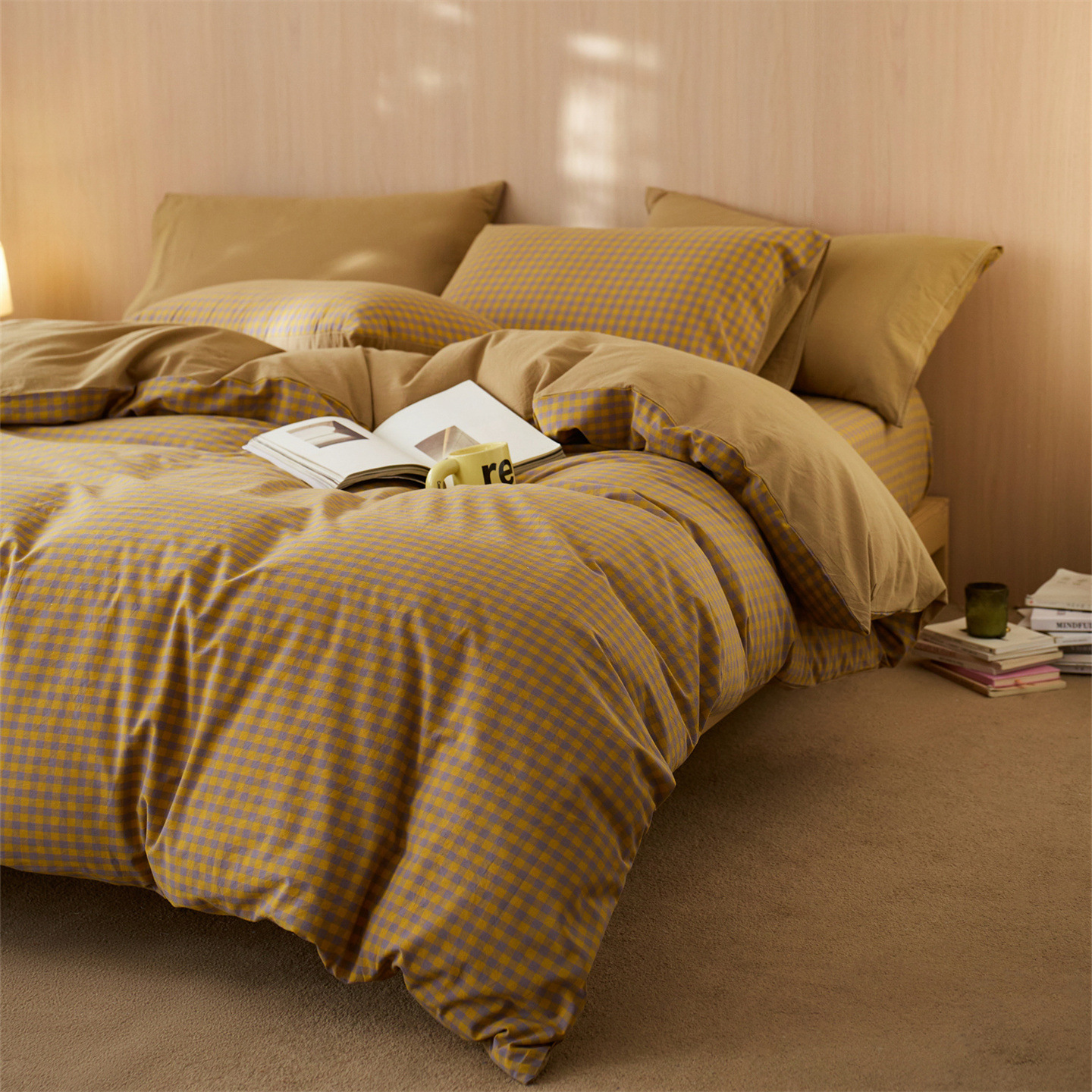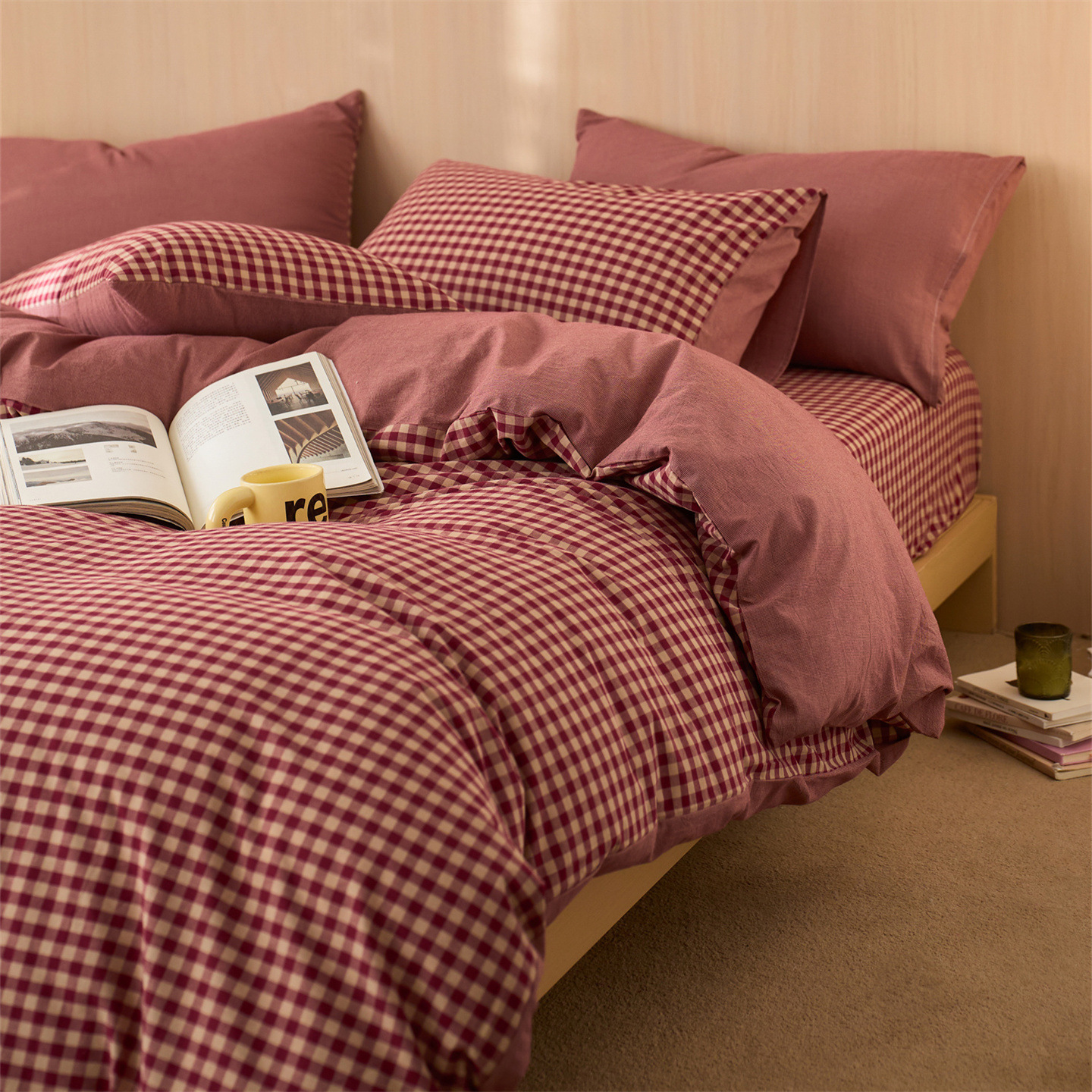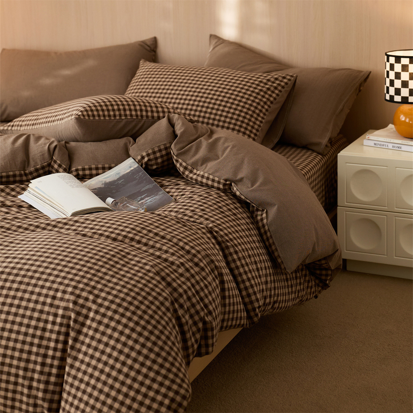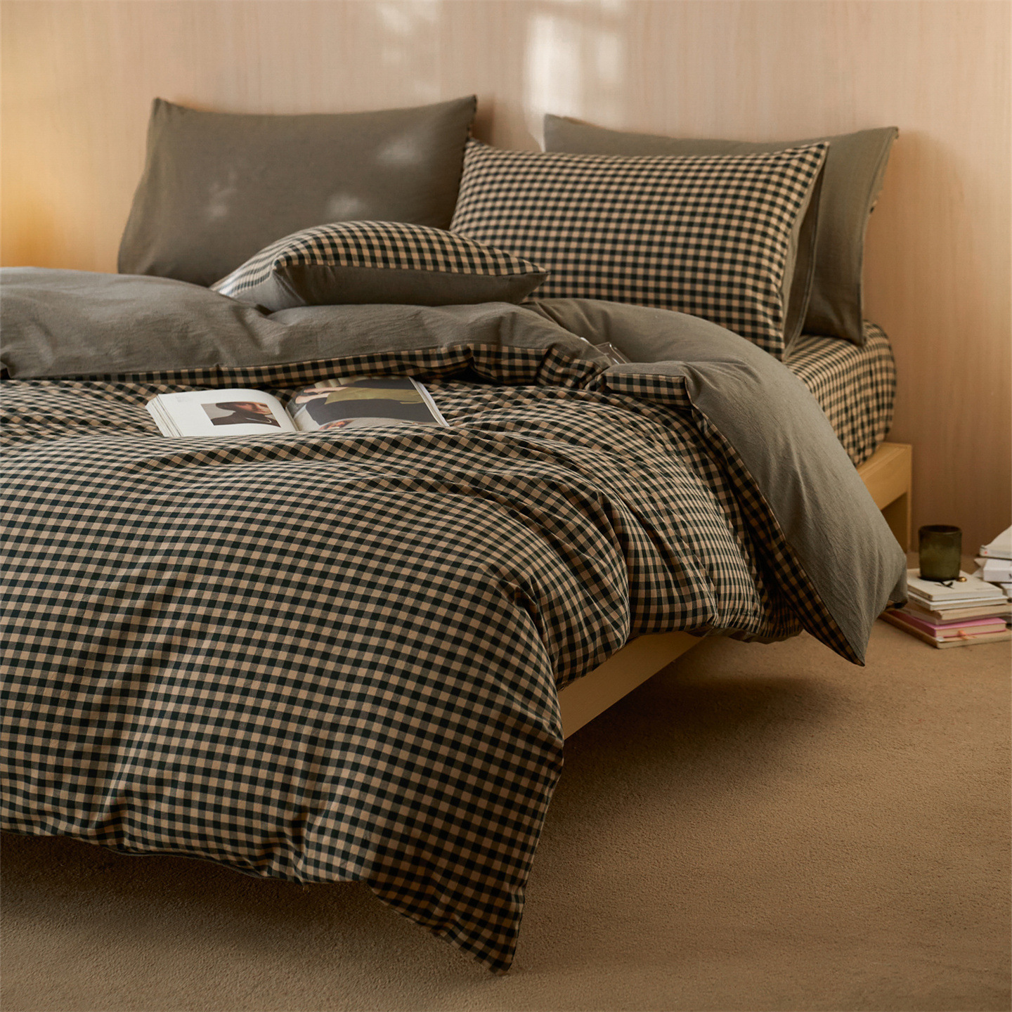 全棉水洗棉四件套纯棉复古格子被套学生宿舍床单三件套无印风床品