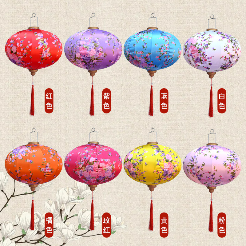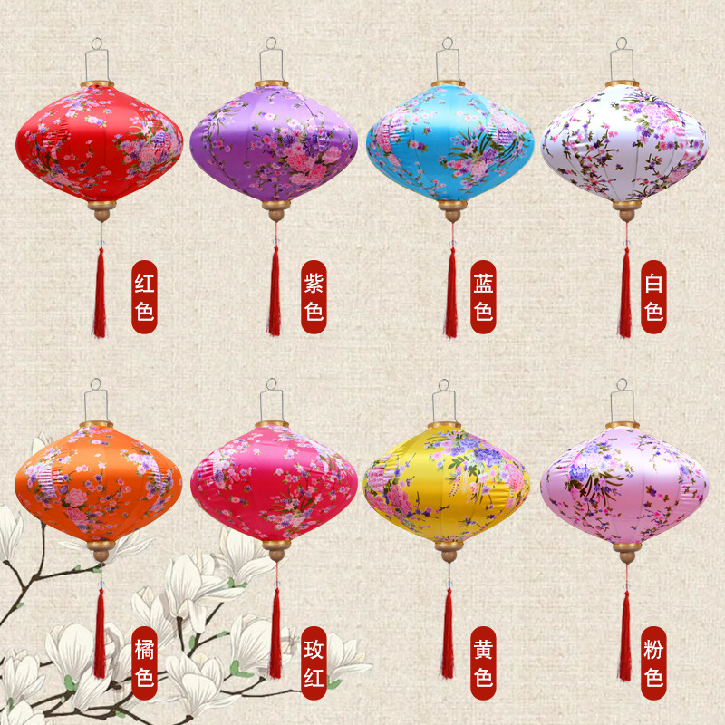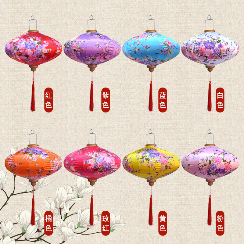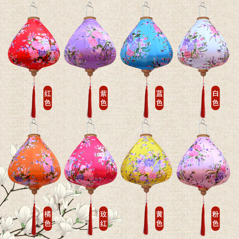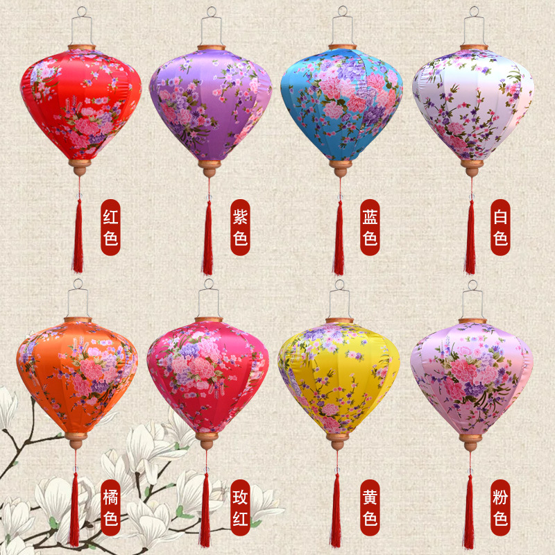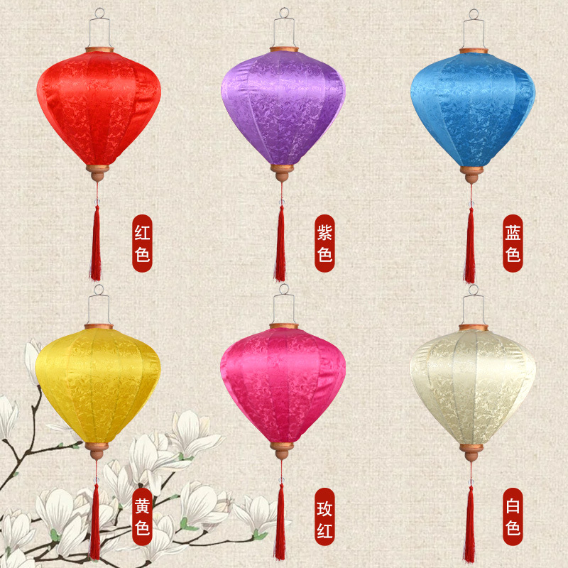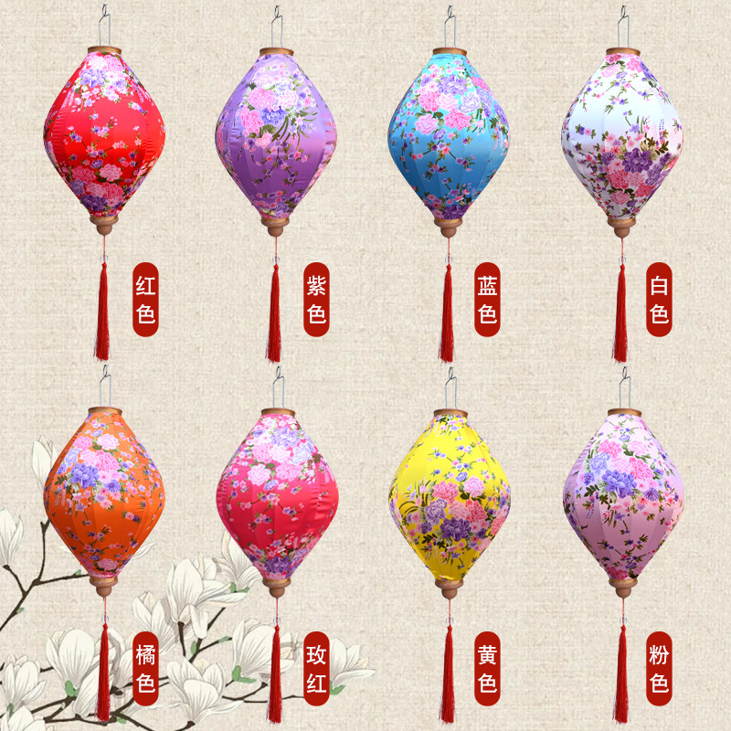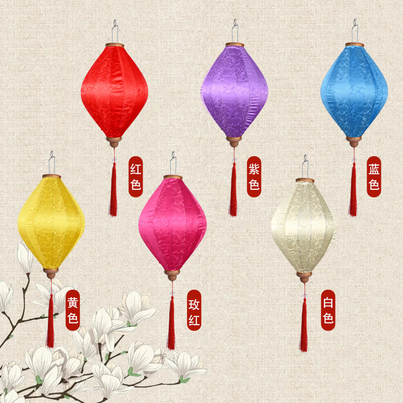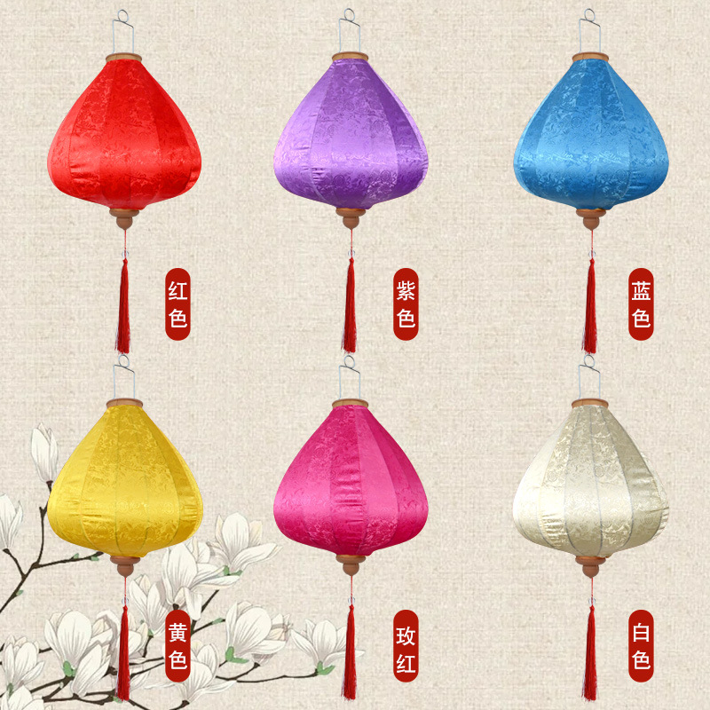 钻石灯笼仿古绸缎景区户外街道异形花灯越南灯笼发光收缩中国风