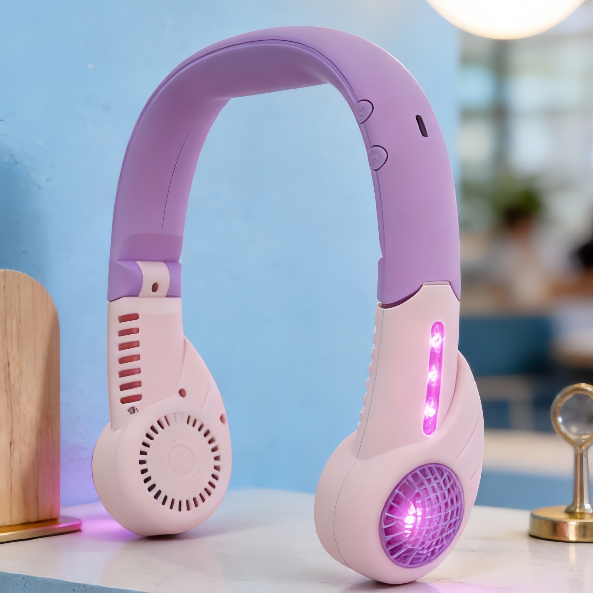 2026新款折叠便携挂脖小风扇USB充电发光三档调速拼色挂颈电风扇
