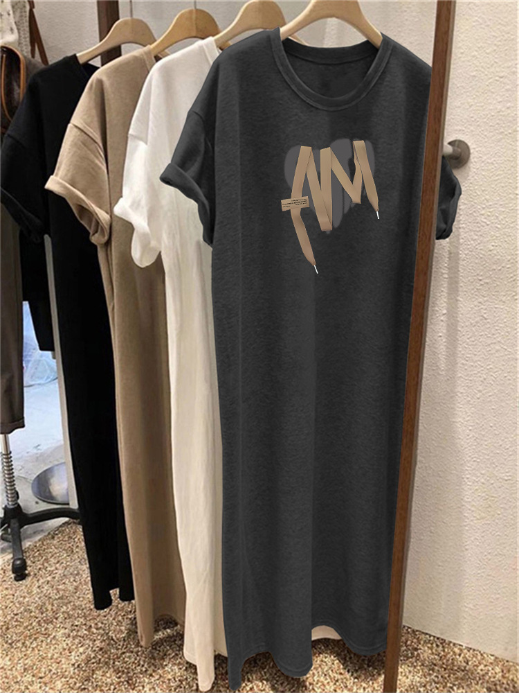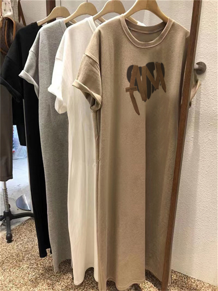 短袖遮肚子t恤长裙女士夏季韩版宽松肥大码休闲中长款过膝连衣裙