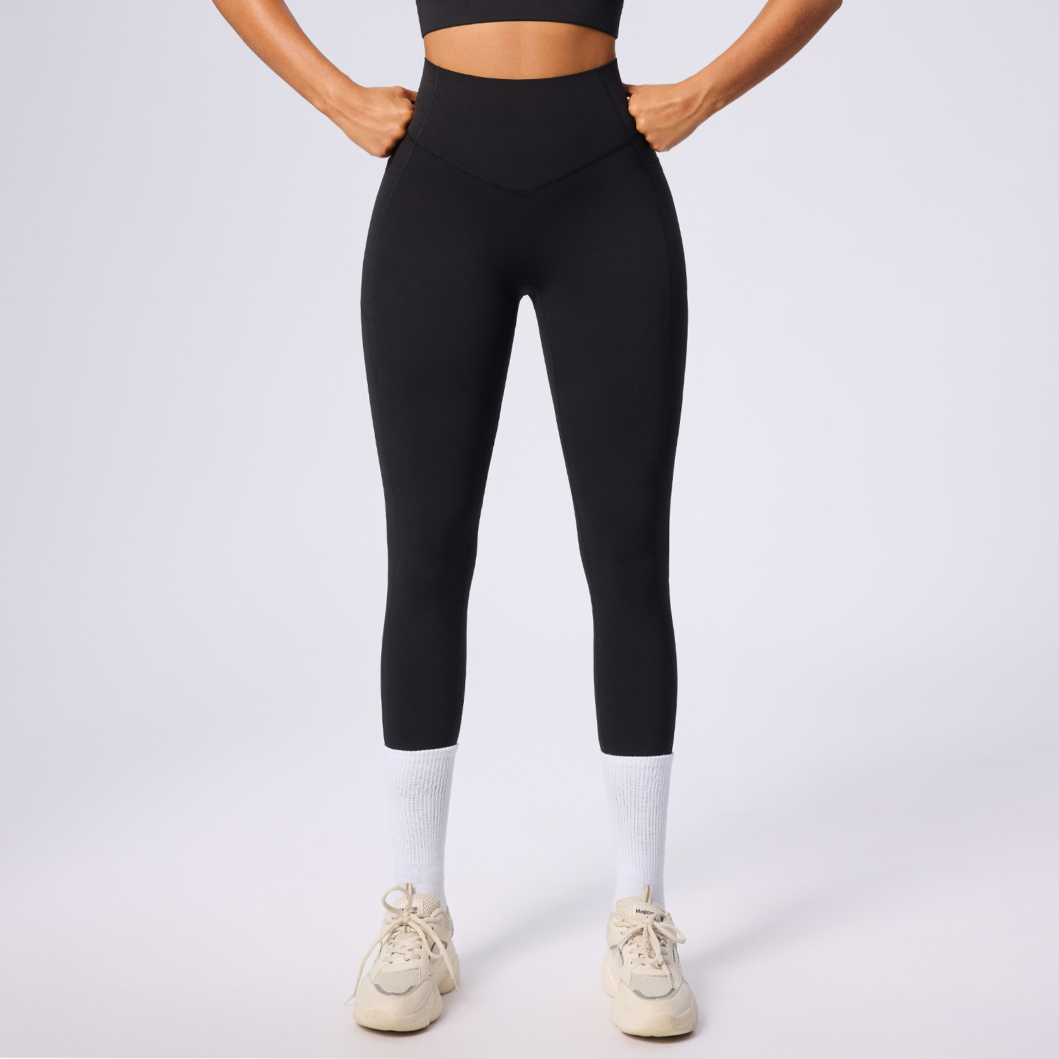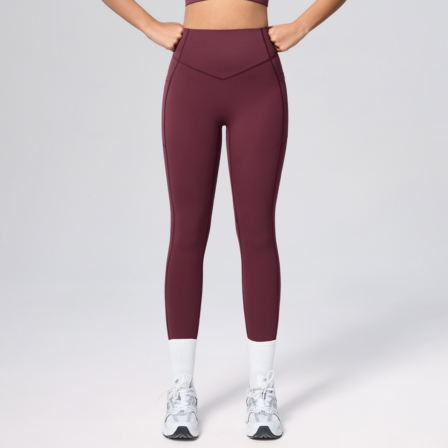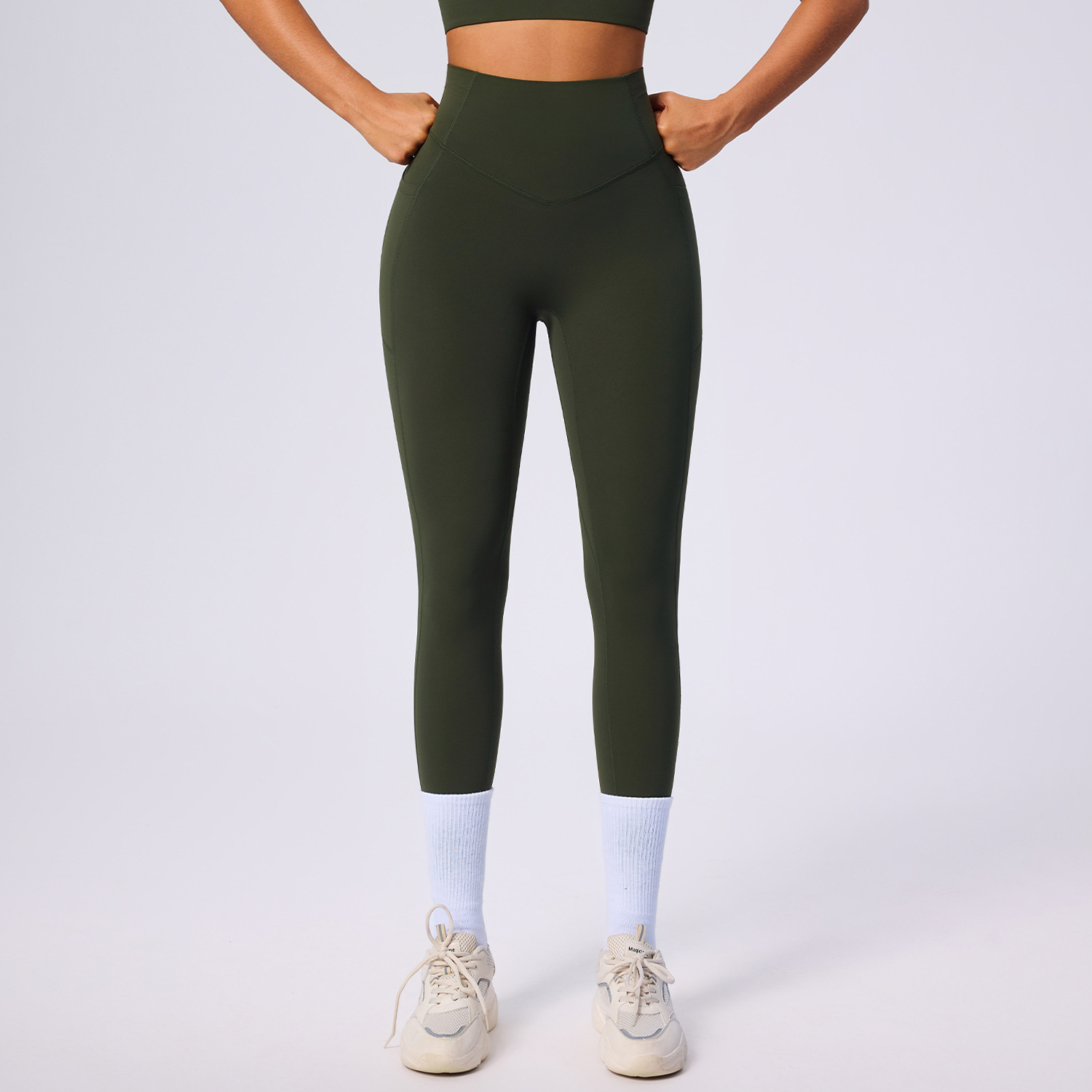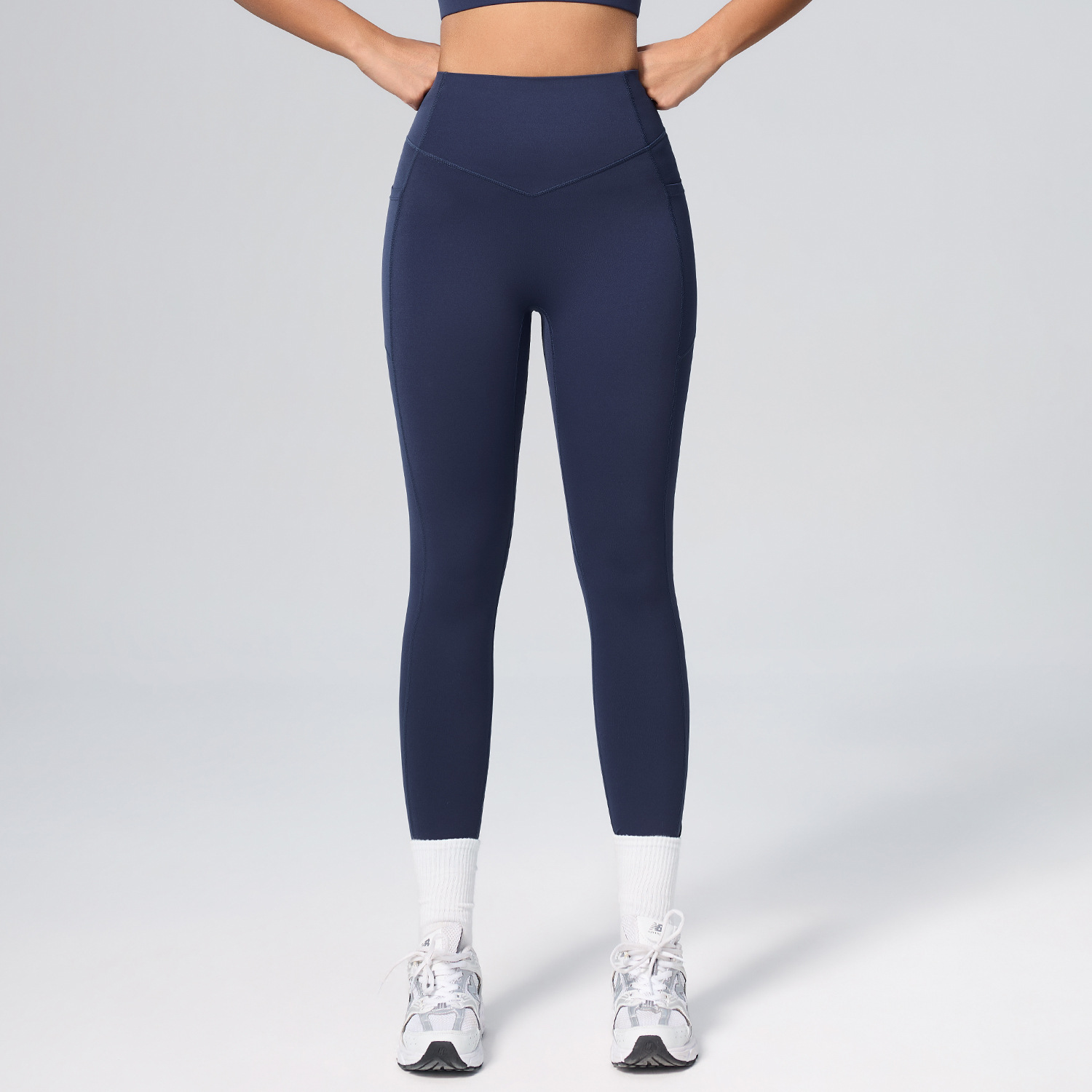 欧美新款塑身运动套装女高腰收腹口袋瑜伽服弹力透气健身服套装