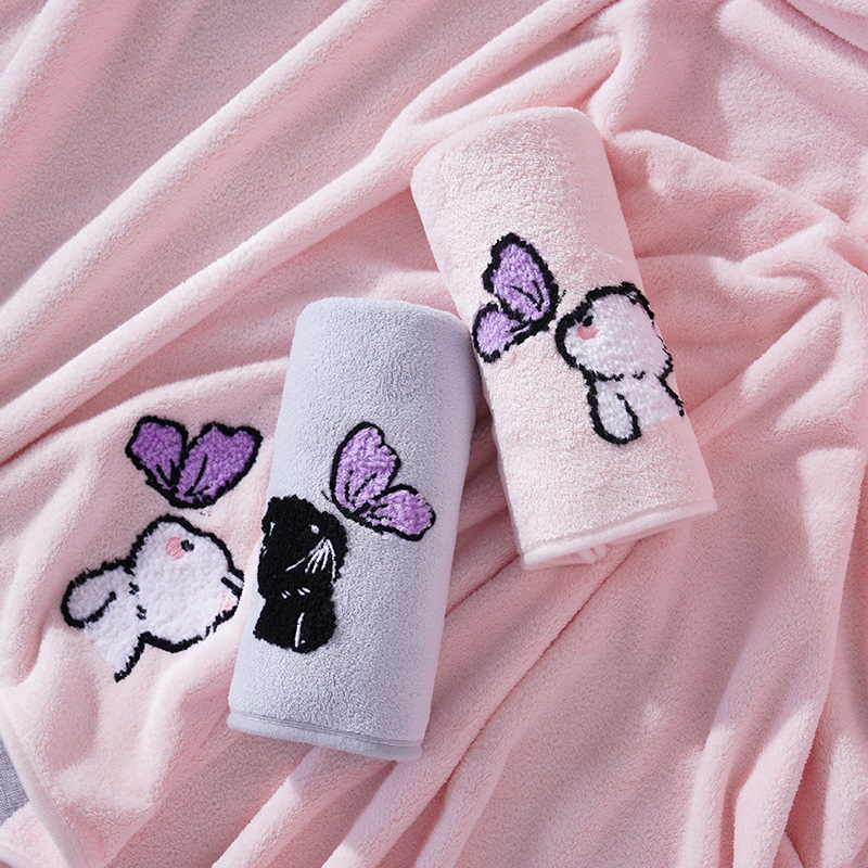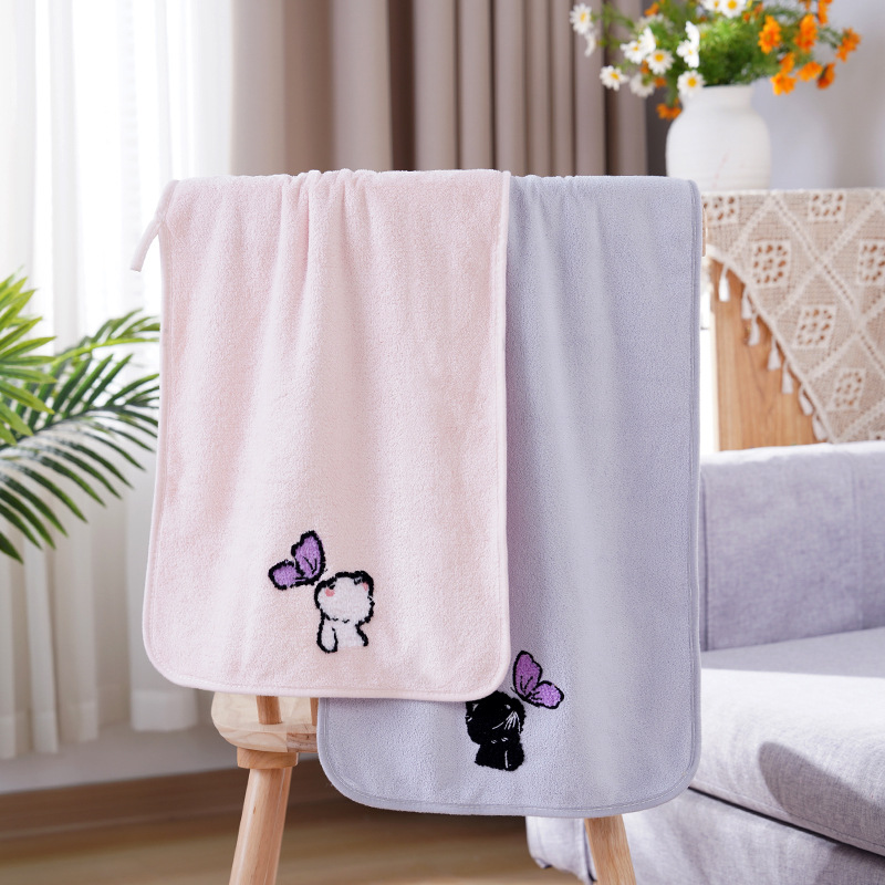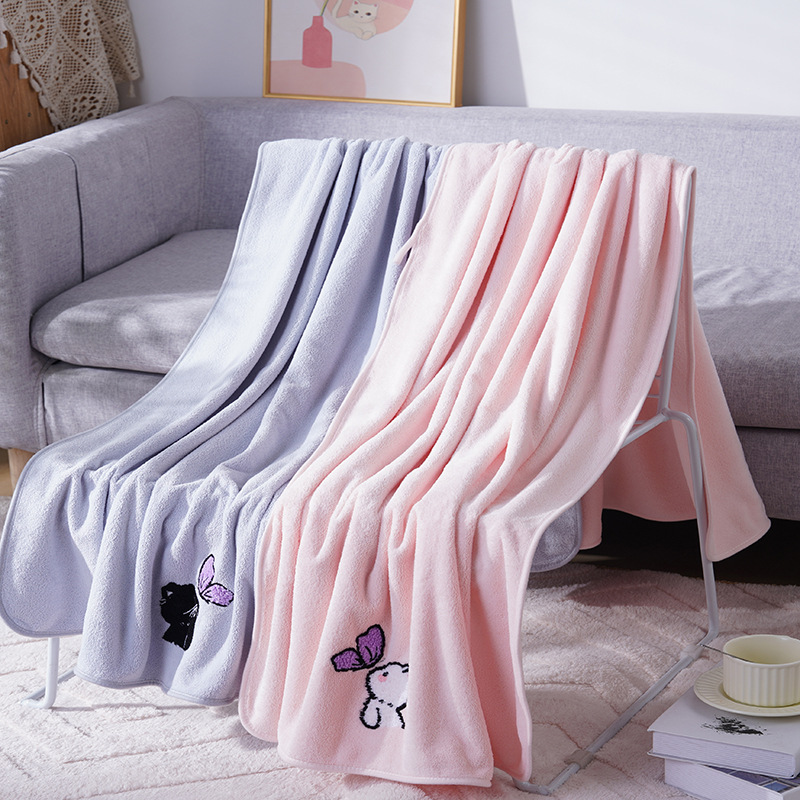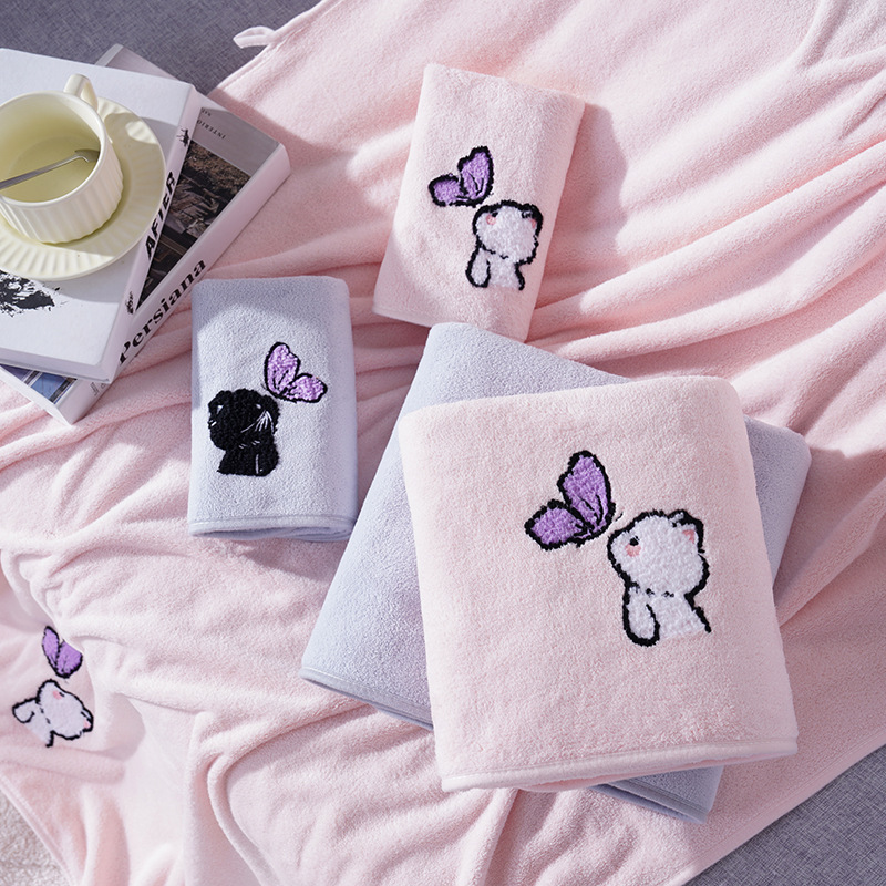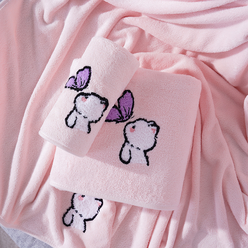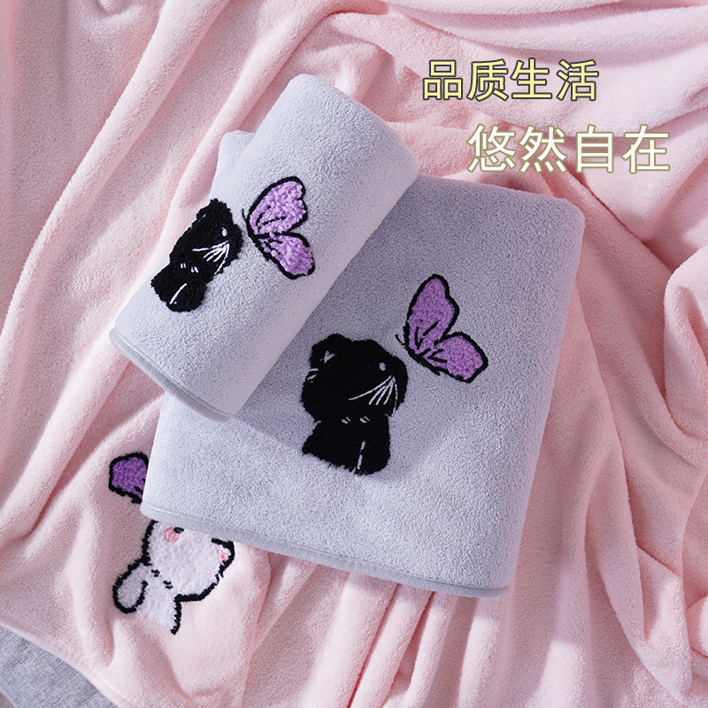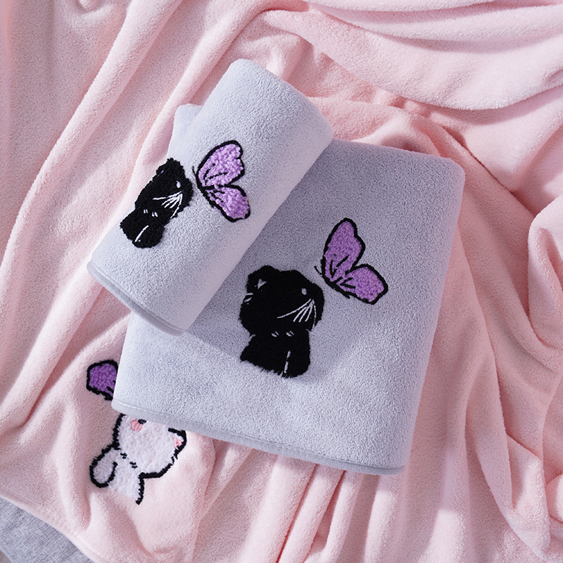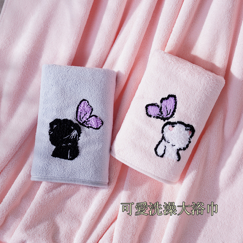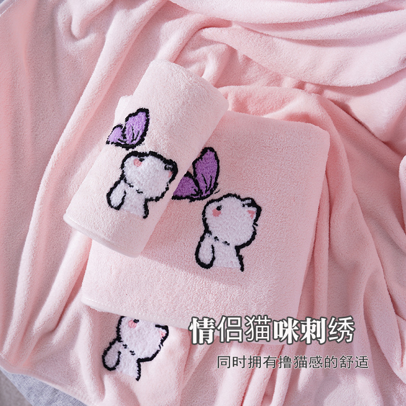 毛巾浴巾情侣浴巾套装珊瑚绒卡通猫毛巾加大浴巾洗脸洗澡情侣宿舍