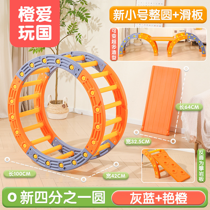 小童橙蓝整圆+滑梯 可变【滑梯_攀爬架_攀岩_感统滚圈_独木桥_摇摇椅】