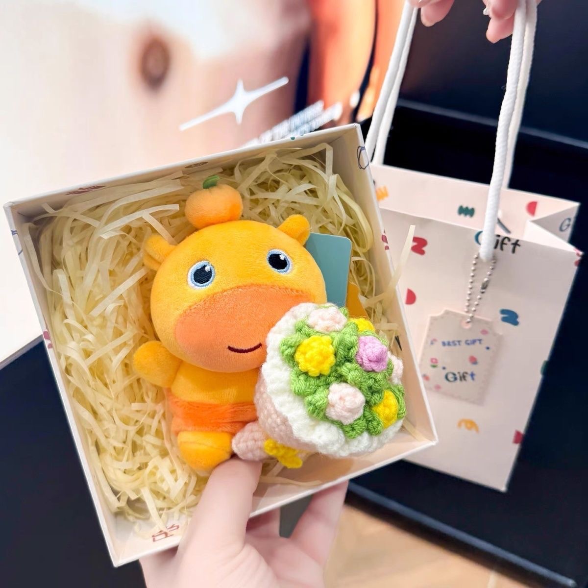 粉色捧花坐姿噜噜+gift礼盒