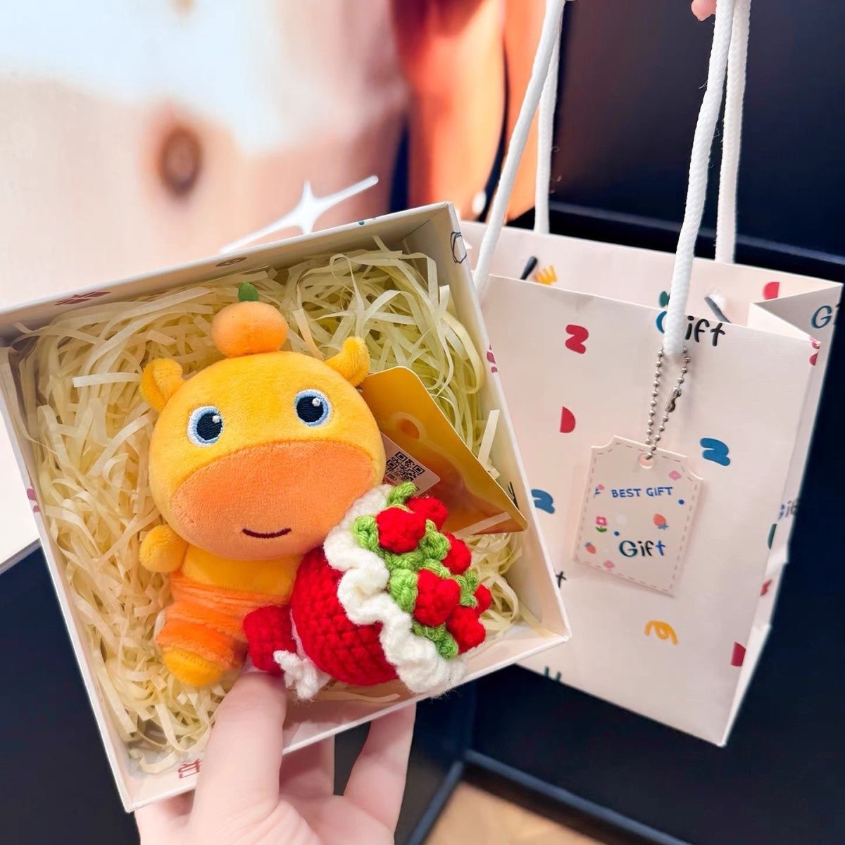 红色捧花坐姿噜噜+gift礼盒
